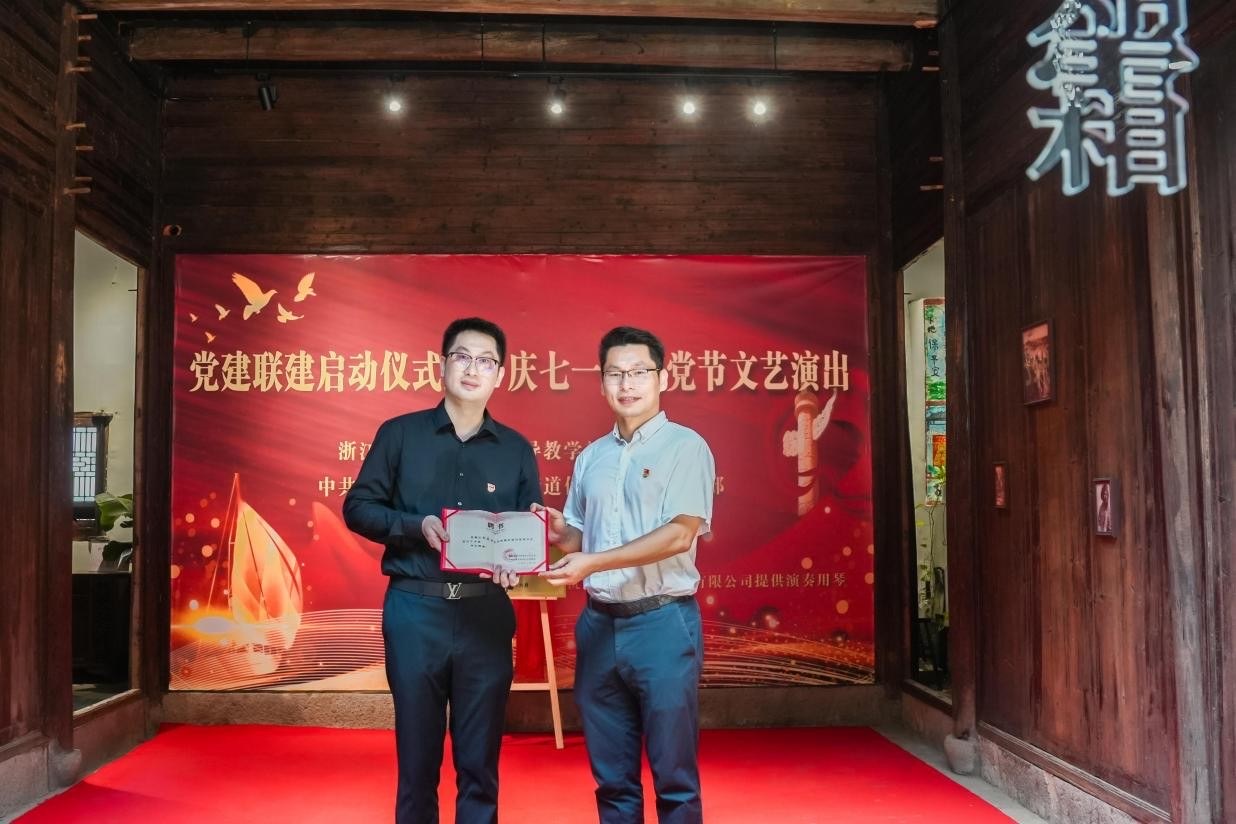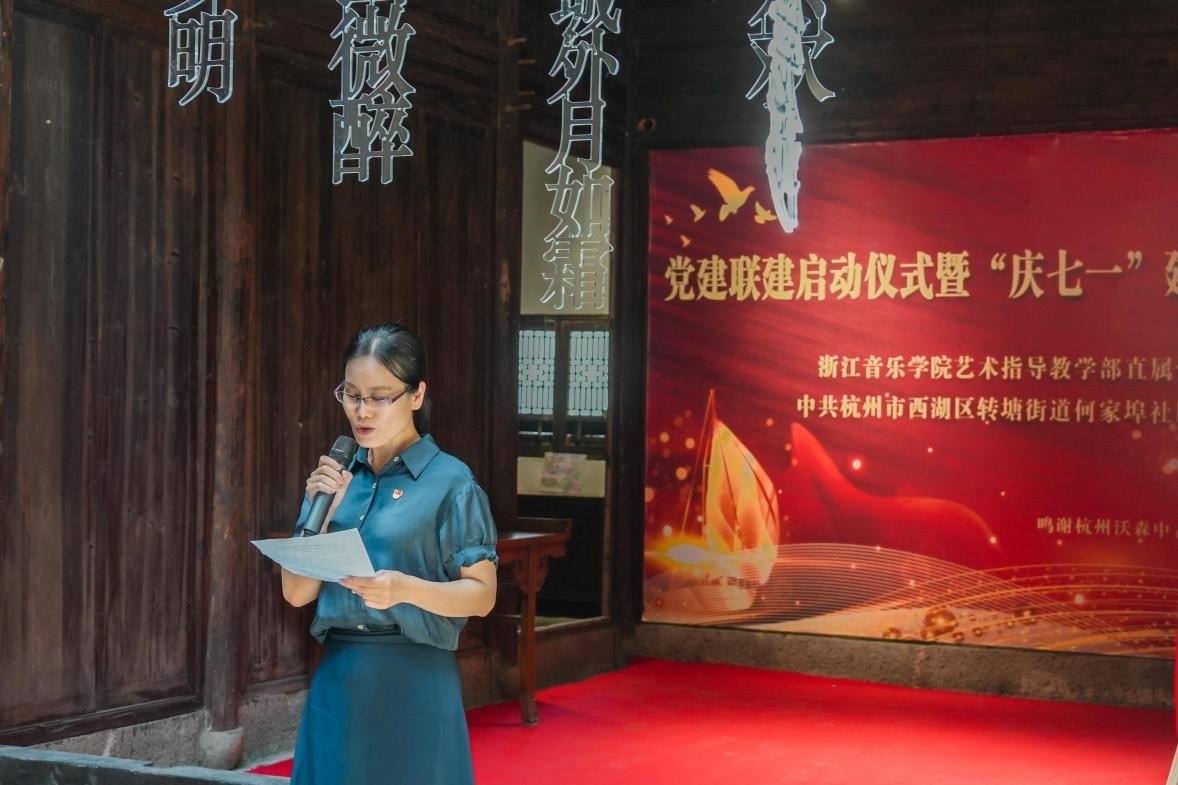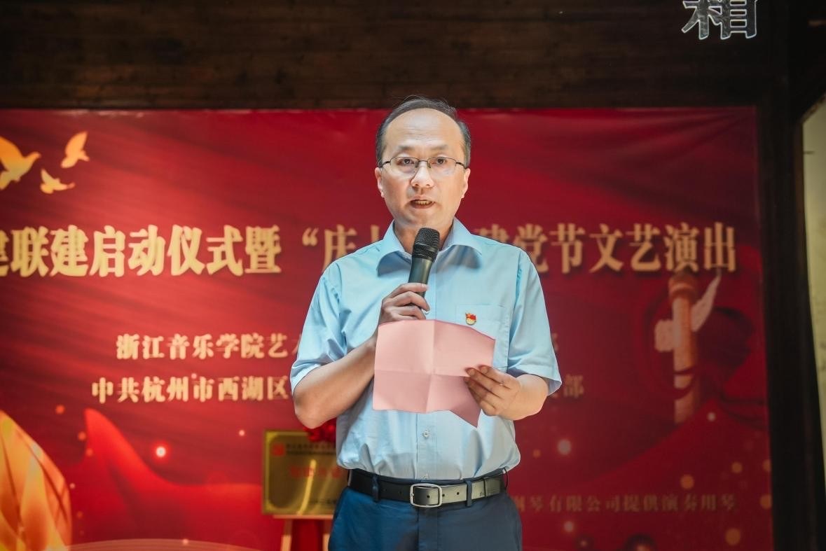為深化黨建引領(lǐng)基層治理,推動校地資源共享、融合發(fā)展,在喜迎建黨104周年之際,6月21日上午,浙江音樂學(xué)院藝術(shù)指導(dǎo)教學(xué)部直屬黨支部與杭州轉(zhuǎn)塘街道何家埠社區(qū)黨總支舉行黨建聯(lián)建啟動儀式暨“慶七一”文藝演出。