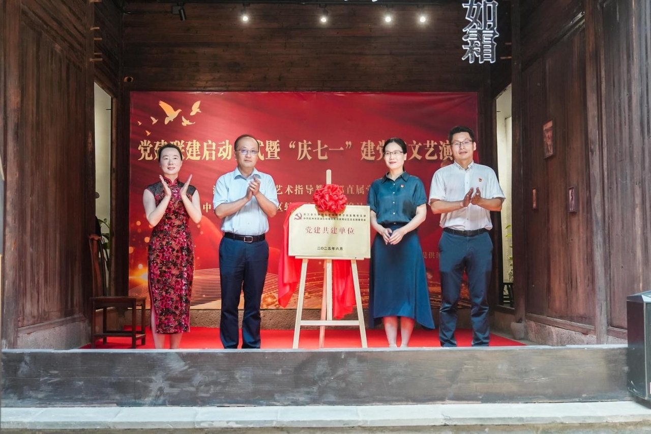 何家埠社區(qū)黨總支與浙江音樂學(xué)院藝術(shù)指導(dǎo)教學(xué)部直屬黨支部共同簽署《黨建聯(lián)建協(xié)議》,并為“黨建共建單位”揭牌。