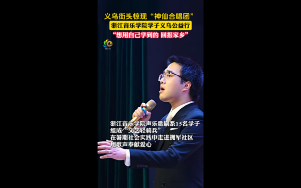 愛義烏:義烏街頭驚現(xiàn)“神仙合唱團(tuán)”,浙江音樂學(xué)院學(xué)子義烏公益行,“想用自己學(xué)到的,回報家鄉(xiāng)”