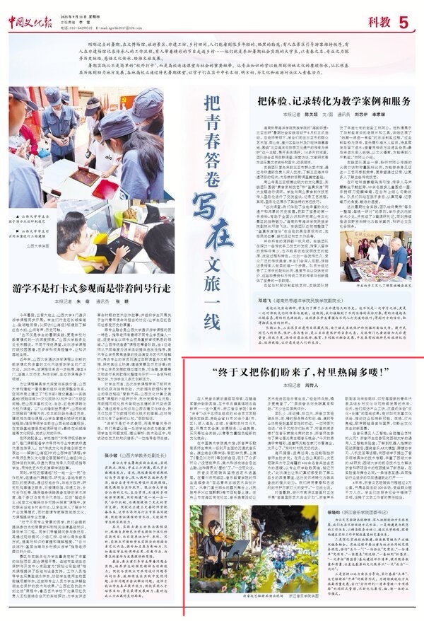 在人民音樂家故里續(xù)寫傳承、在碧海軍營中致敬英雄、在千年古鎮(zhèn)里唱響古曲新聲……這個夏天,浙江音樂學(xué)院(簡稱“浙音”)近千名師生組成的40余支文藝輕騎兵實踐團,奔赴全省11市20余個縣(市、區(qū)),深入海島、古城、鄉(xiāng)鎮(zhèn)和農(nóng)村文化禮堂,開展文藝會演、志愿服務(wù)、公益美育、采風等社會實踐,以青春力量擔負起新的文化使命。