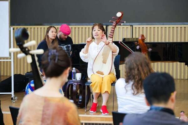 除此之外,工作坊還特別設(shè)置了由多位導(dǎo)師分別領(lǐng)銜的樂(lè)隊(duì)組合環(huán)節(jié)——每個(gè)樂(lè)隊(duì)在成員結(jié)構(gòu)與樂(lè)器配置上都獨(dú)具匠心:既有琵琶、古琴、箜篌等中國(guó)傳統(tǒng)樂(lè)器演繹的細(xì)膩與深邃,也融合鋼琴、小提琴等西方樂(lè)器,共同呈現(xiàn)出跨文化音樂(lè)豐富的層次與動(dòng)感。