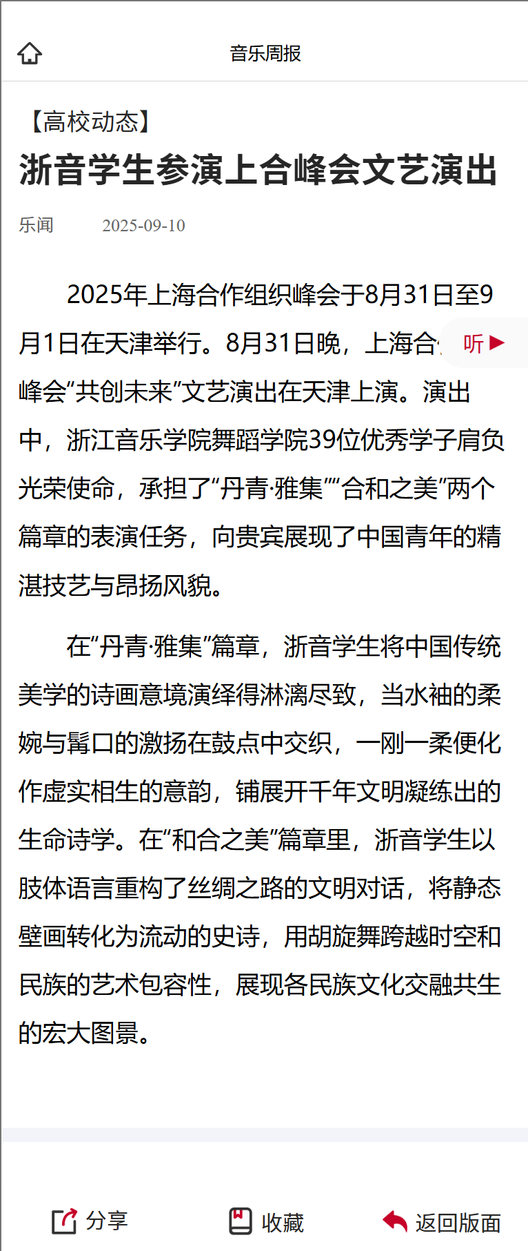 音樂周報:浙音學(xué)生參演上合峰會文藝演出