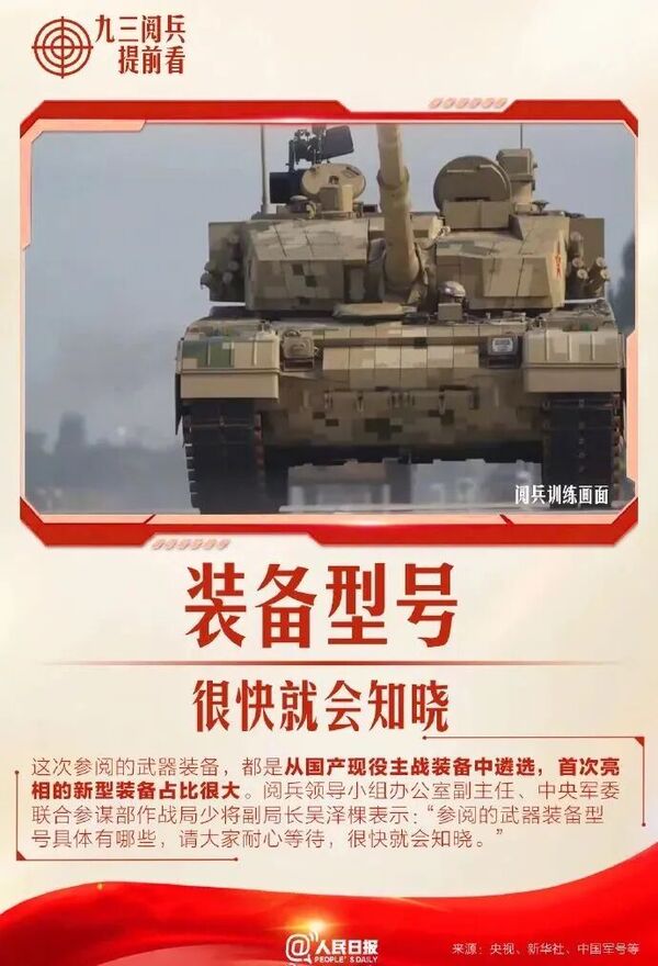 閱兵領(lǐng)導(dǎo)小組辦公室副主任、中央軍委聯(lián)合參謀部作戰(zhàn)局少將副局長吳澤棵說,這次閱兵是中國人民抗日戰(zhàn)爭暨世界反法西斯戰(zhàn)爭勝利80周年紀(jì)念活動重要組成部分,參閱力量要素全,結(jié)構(gòu)編成體系化,武器裝備數(shù)量多,初次亮相占比高,是進(jìn)入新時代新征程人民軍隊政治建軍新風(fēng)貌、力量結(jié)構(gòu)新布局、現(xiàn)代化建設(shè)新進(jìn)展、備戰(zhàn)打仗新成效的一次集中展示。目前,已在天安門地區(qū)完成了三次綜合演練,總體達(dá)到預(yù)期效果,全體受閱部隊精神飽滿、士氣高昂,所有參閱武器裝備始終保持良好狀態(tài),閱兵準(zhǔn)備基本就緒,已經(jīng)進(jìn)入倒計時。