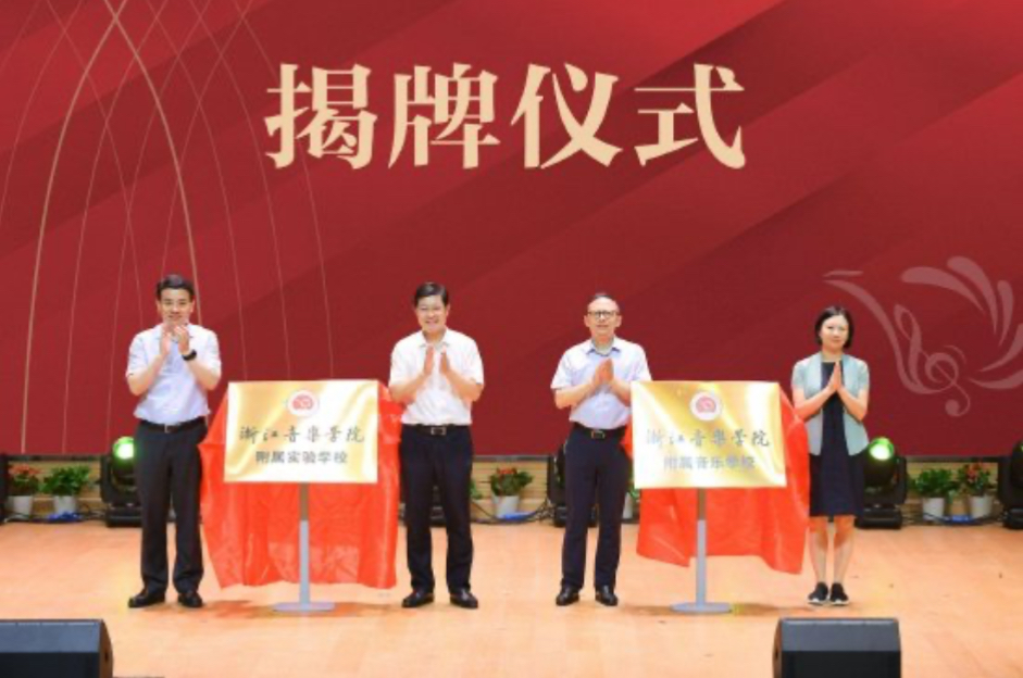 據(jù)悉,浙江音樂學(xué)院黨委書記干武東、西湖區(qū)區(qū)委書記董毓民共同為浙江音樂學(xué)院附屬音樂學(xué)校揭牌。浙江音樂學(xué)院院長(zhǎng)王瑞,西湖區(qū)區(qū)委副書記、區(qū)長(zhǎng)周揚(yáng)為浙江音樂學(xué)院附屬實(shí)驗(yàn)學(xué)校揭牌。