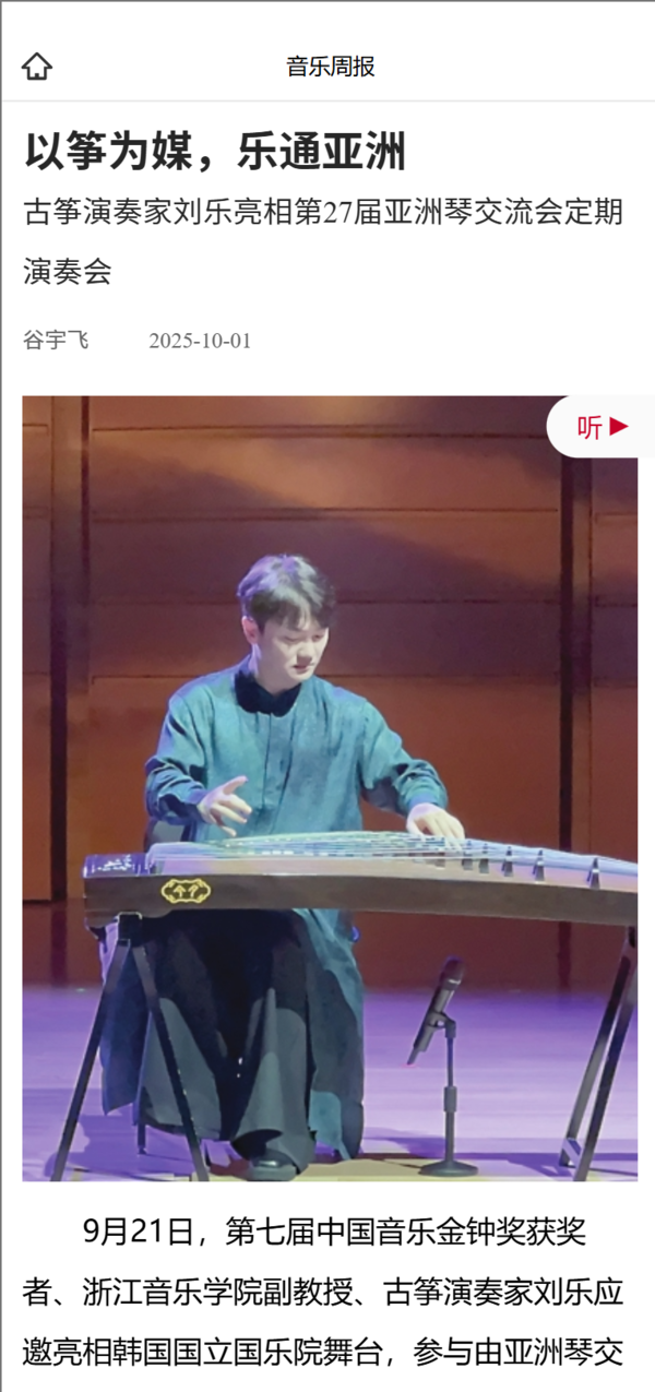 音樂周報:以箏為媒,樂通亞洲 古箏演奏家劉樂亮相第27屆亞洲琴交流會定期演奏會