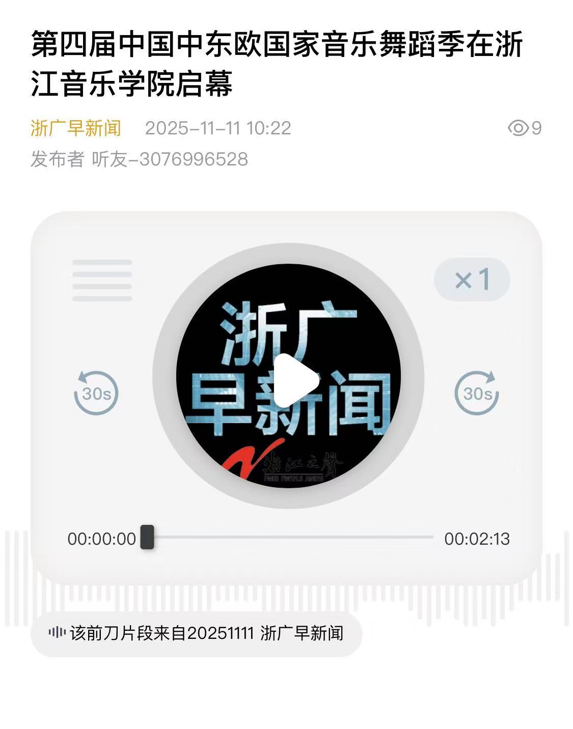 浙廣早新聞:第四屆中國中東歐國家音樂舞蹈季在浙江音樂學院啟幕