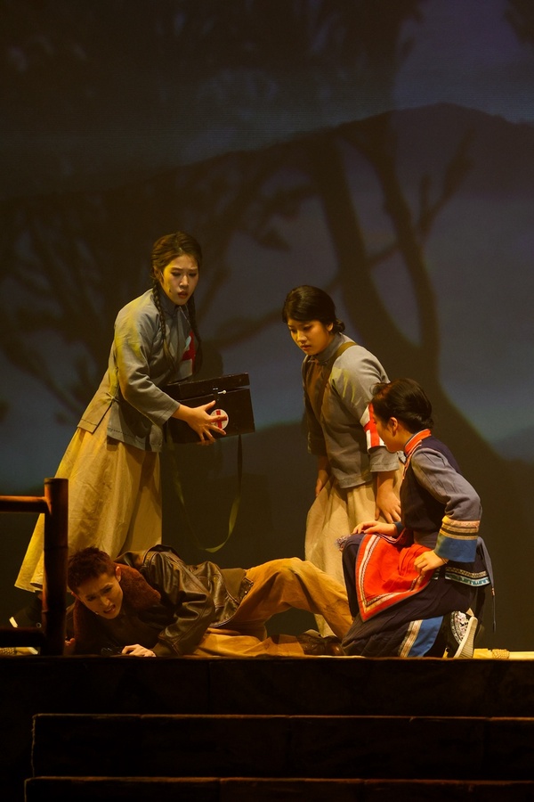 為泰順創(chuàng)作一部原創(chuàng)音樂(lè)劇的想法隨之成形。由吳滌牽頭,組建浙音師生為主體的主創(chuàng)團(tuán)隊(duì),深入畬鄉(xiāng)10余次。他們住在村民家中,學(xué)習(xí)畬語(yǔ)、記錄歌謠,跟著傳承人一針一線地學(xué)習(xí)畬繡,還走訪了數(shù)十位高齡村民、梳理檔案館史料,收集逾20萬(wàn)字口述歷史素材。其中,畬族村民用嘹亮山歌傳遞重要情報(bào)、采集中草藥救治受傷戰(zhàn)士、將飛行員巧妙藏匿于深山地窖等關(guān)鍵細(xì)節(jié)被一一挖掘。這些都成為劇本創(chuàng)作最扎實(shí)的根基、最生動(dòng)的素材。
