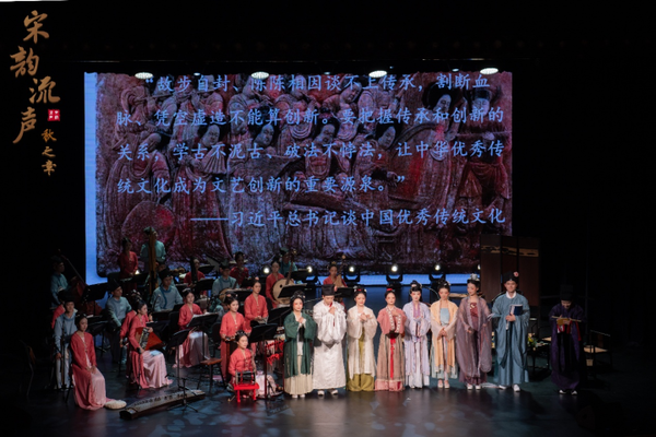 金美玲教授在演出后表示:“宋詞古曲的最終呈現(xiàn),凝結(jié)了策劃統(tǒng)籌、理論研究、作曲編創(chuàng)、唱奏表演、舞美制作、錄制宣發(fā)等多方面的辛苦付出。通過(guò)《宋韻流聲》系列演出,讓觀眾領(lǐng)略到宋詞古曲的獨(dú)特魅力,讓我們看到了古曲文化在當(dāng)代轉(zhuǎn)型中的無(wú)限可能,相信在未來(lái),會(huì)有更多、更精彩的宋詞古曲與當(dāng)代藝術(shù)文化相結(jié)合在新時(shí)代舞臺(tái)上演繹,為中華優(yōu)秀傳統(tǒng)文化的傳承和發(fā)展做出更大的貢獻(xiàn)。”