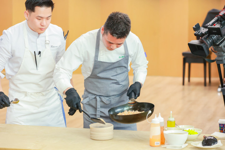 傅月良大師現(xiàn)場制作餐廳招牌菜——第50多版的龍井蝦仁和百花釀蝦膠,還分享了堅持傳承創(chuàng)新杭幫菜的的心路歷程,講解菜肴背后的文化故事。