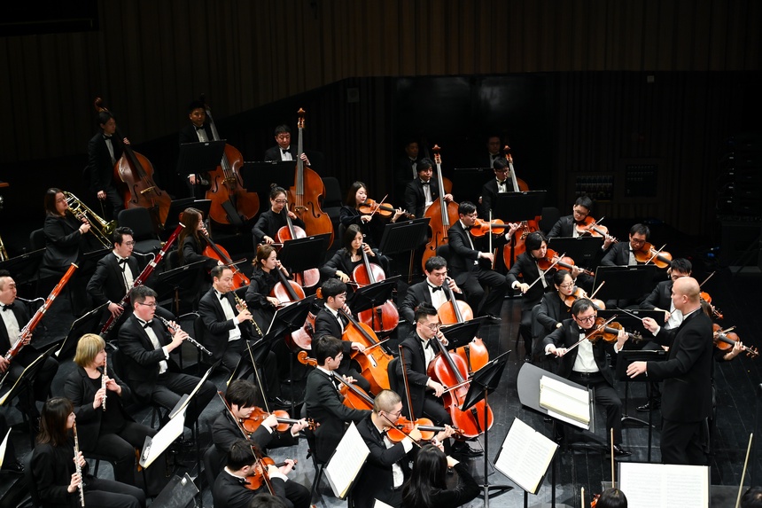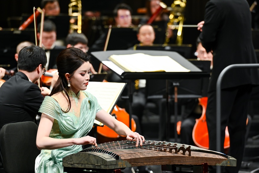 音樂會以一曲激昂的《魯斯蘭與柳德米拉》序曲激昂開篇。隨后,古箏協(xié)奏《望云賦》以清透靈動的音韻勾勒出云卷云舒的東方意境,而歌劇選段《愛永在》則以深情的旋律吟詠出真摯雋永的家國情懷。琵琶協(xié)奏《絲路飛天》以繁復的指法與豐富的音色變化,再現(xiàn)絲綢之路上的風物與遐思。《鳥兒在風中歌唱》以極具藝術感染力的演繹,將深切而克制的悲情浸透于每個音符之中,直抵人心;《苗嶺飛歌》則一轉情緒,以清亮悠揚的嗓音喚醒山野間蓬勃的生命氣息,宛如晨光穿透層林。