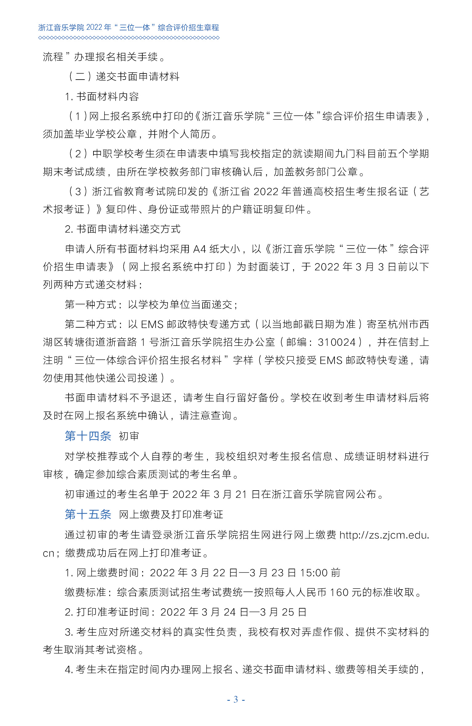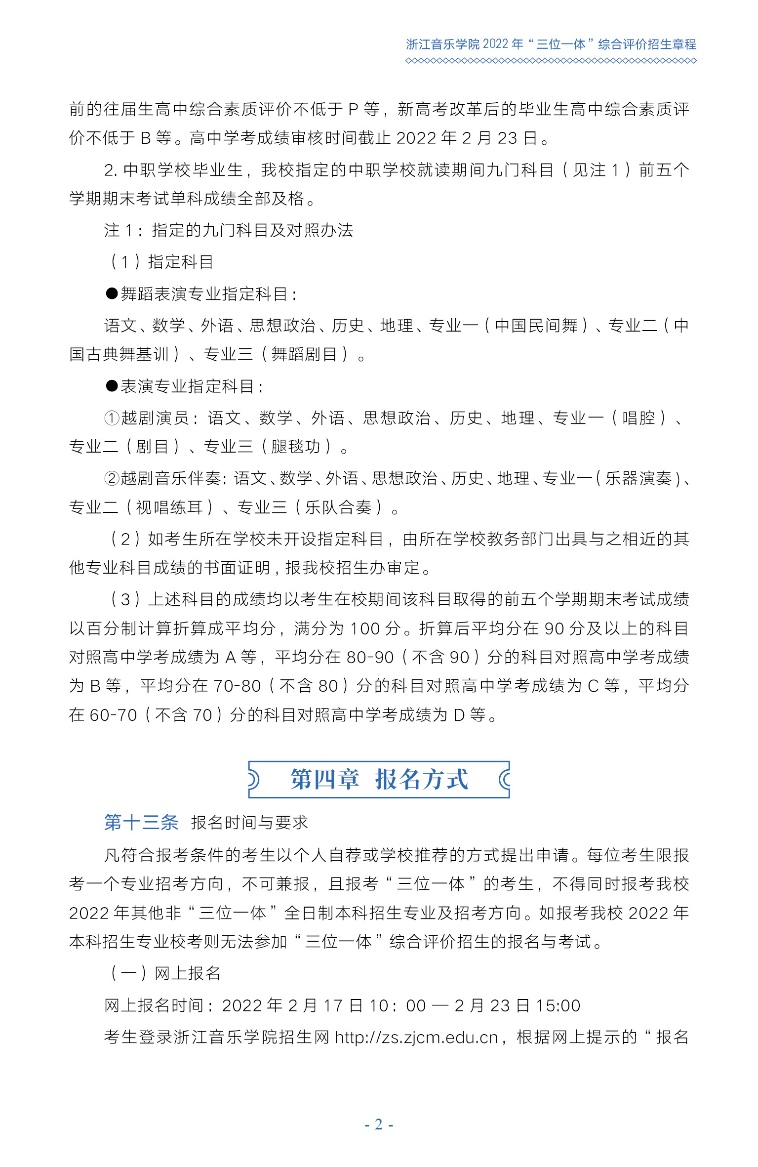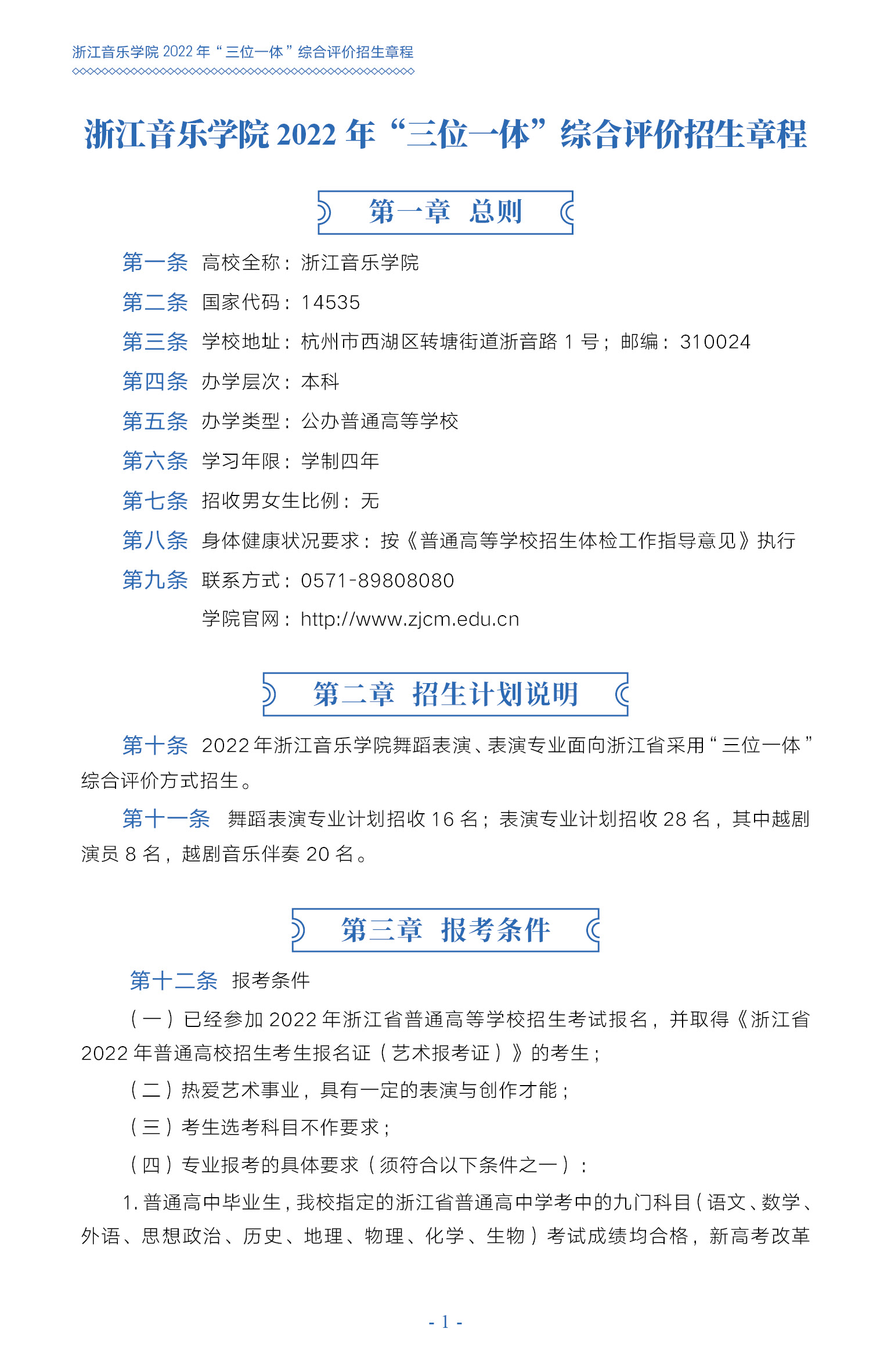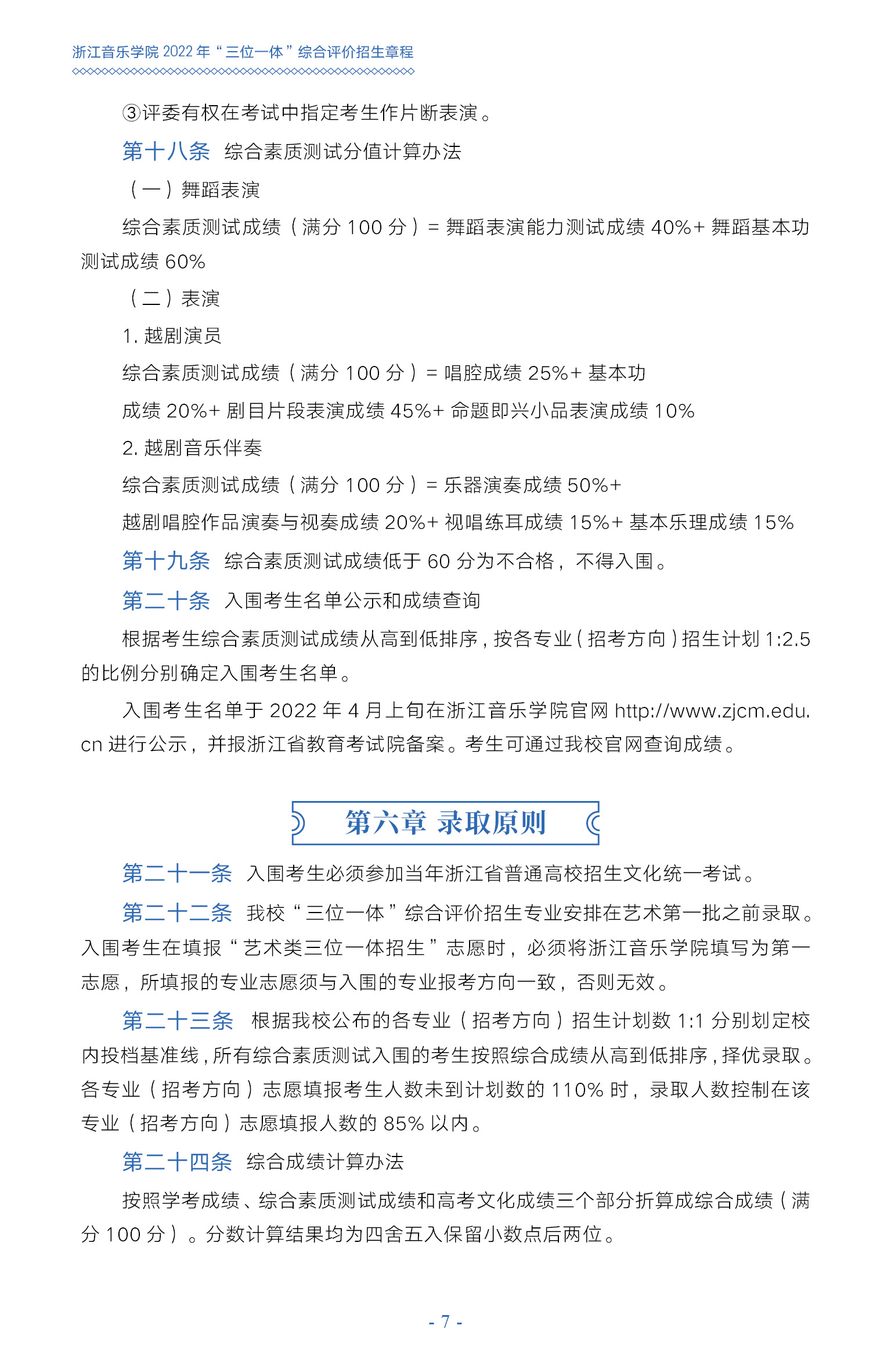 浙江音樂學(xué)院2022年“三位一體”綜合評(píng)價(jià)招生章程