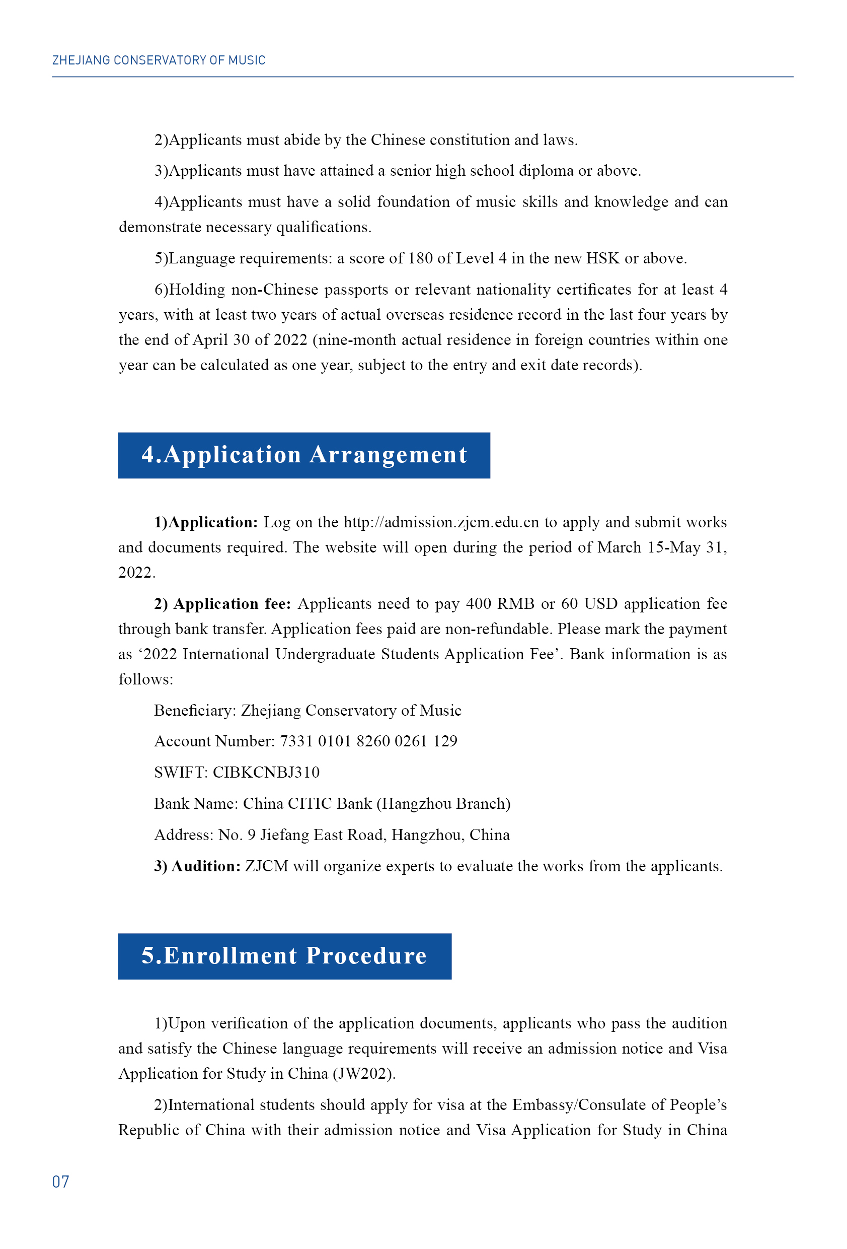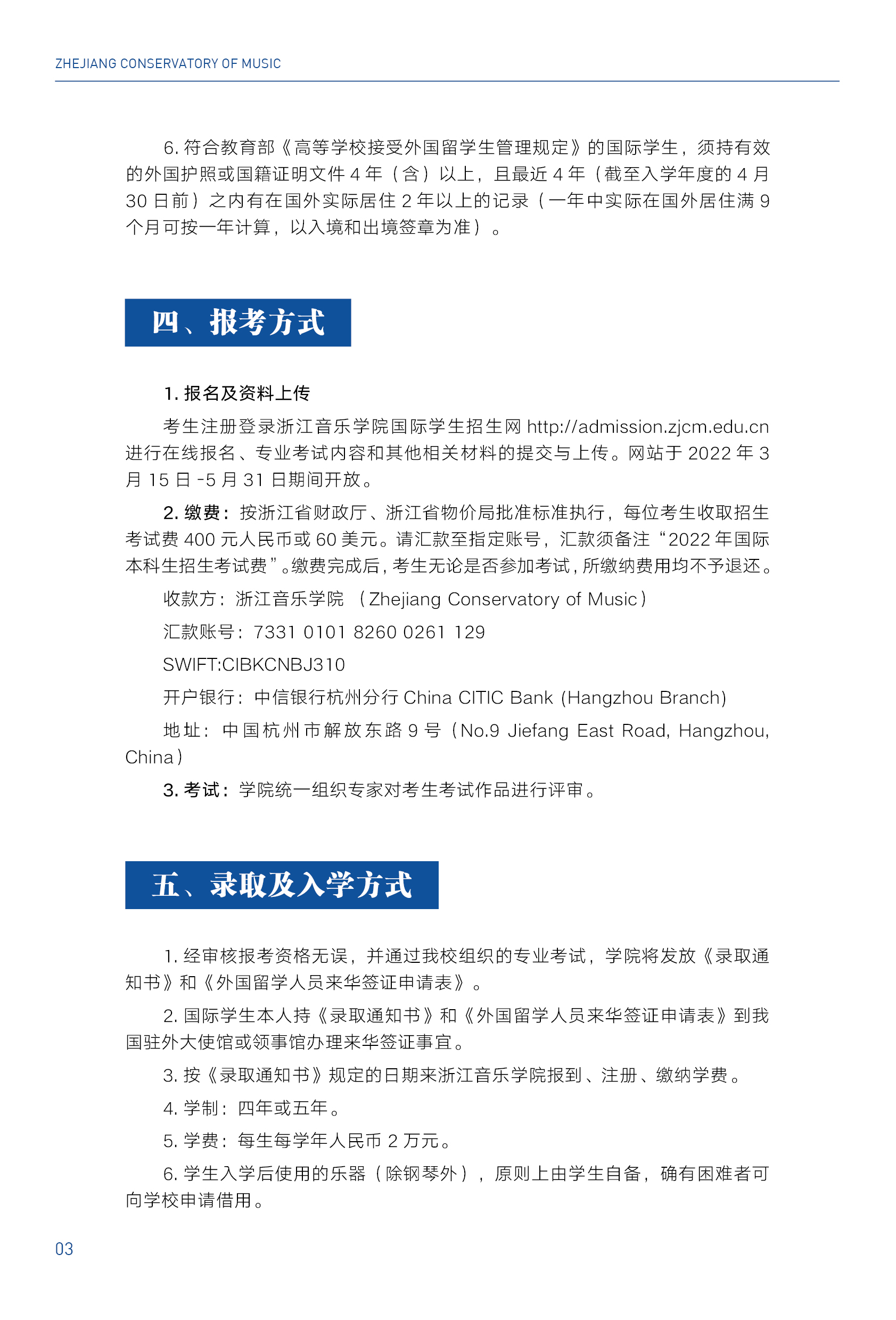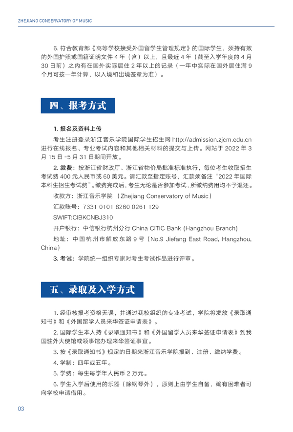 2022浙江音樂學(xué)院國(guó)際學(xué)生本科招生簡(jiǎn)章