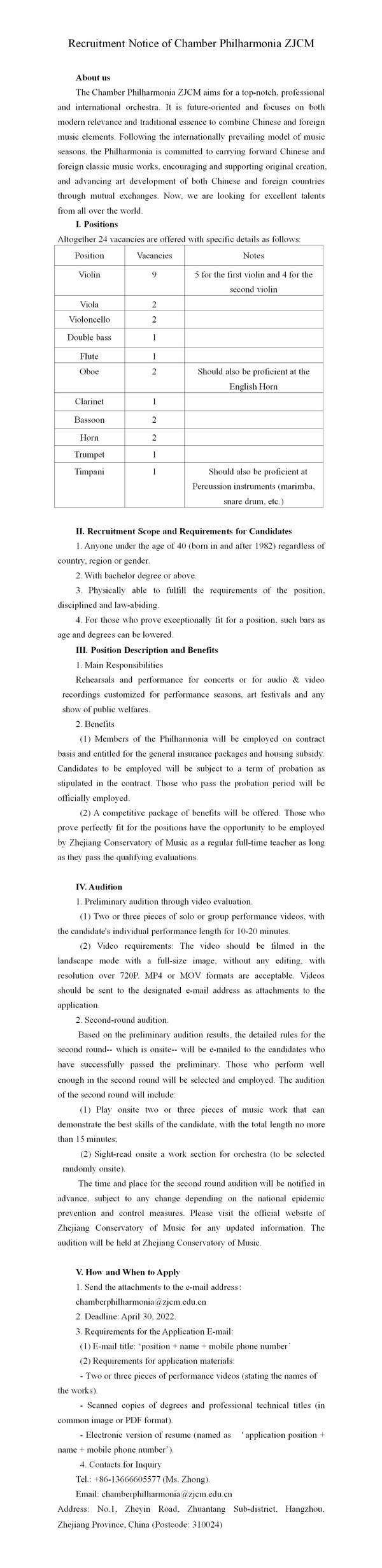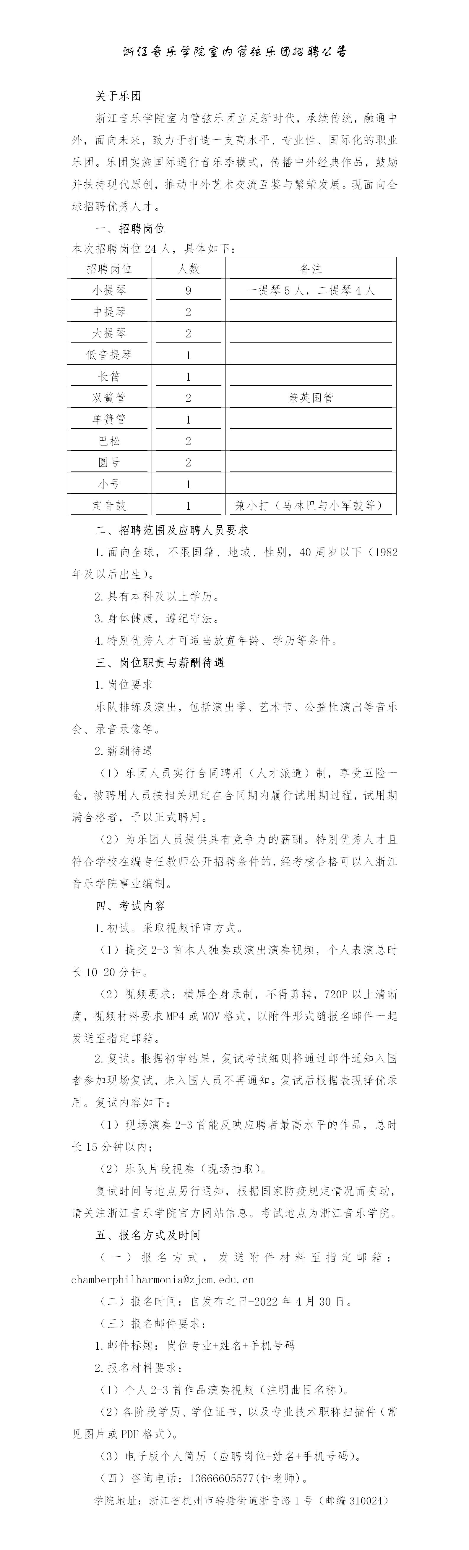浙江音樂學院室內管弦樂團招聘公告