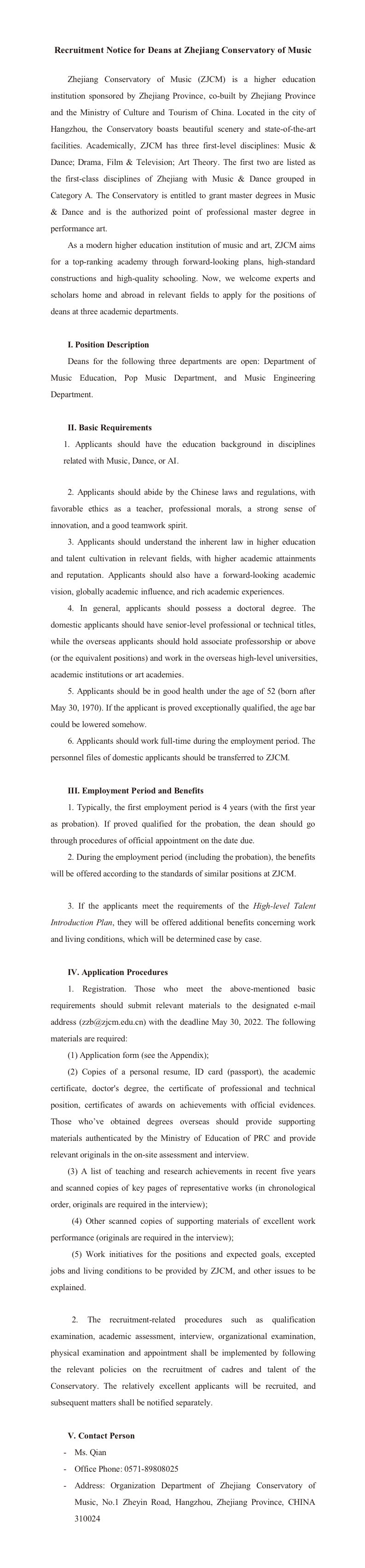 浙江音樂學(xué)院公開招聘二級學(xué)院(系)院長、主任公告