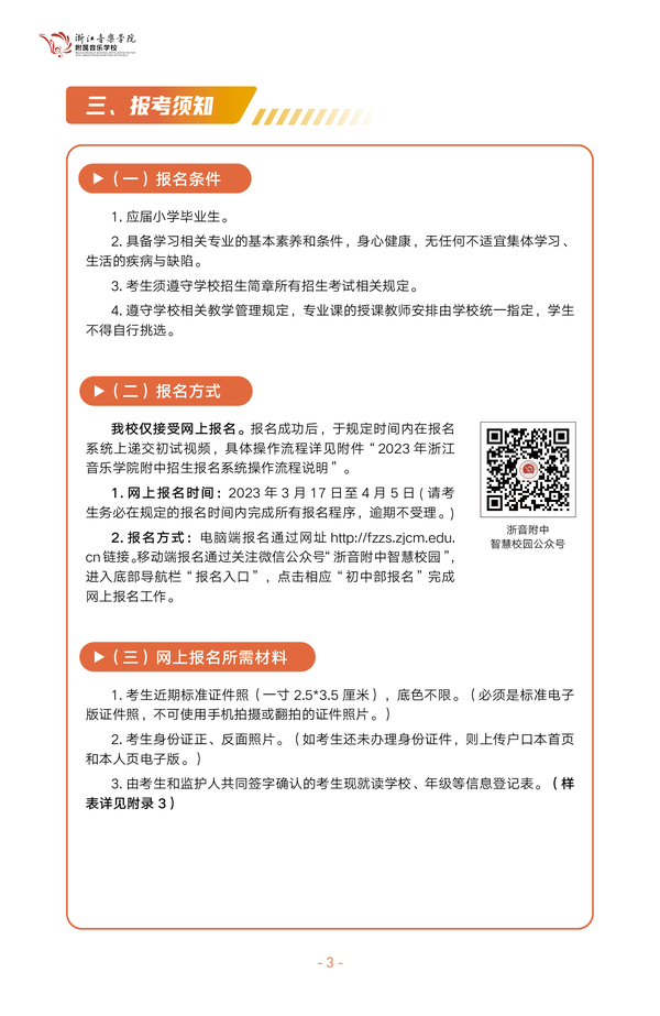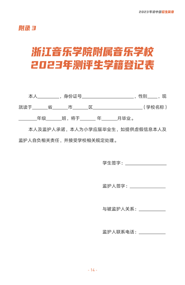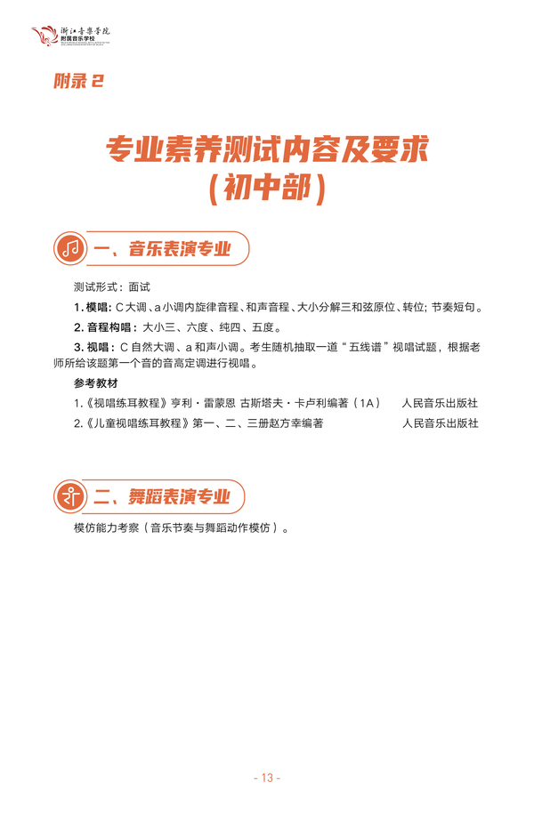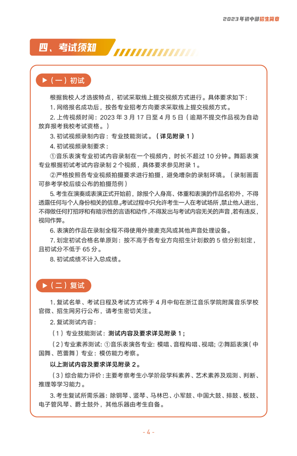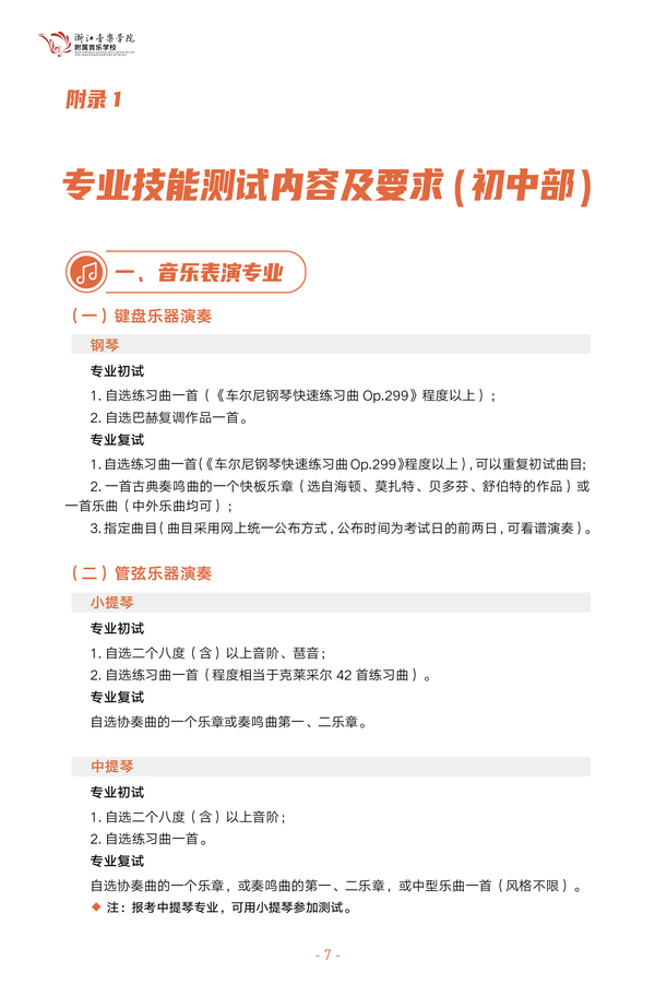 2023浙江音樂學院附屬音樂學校初中部招生簡章