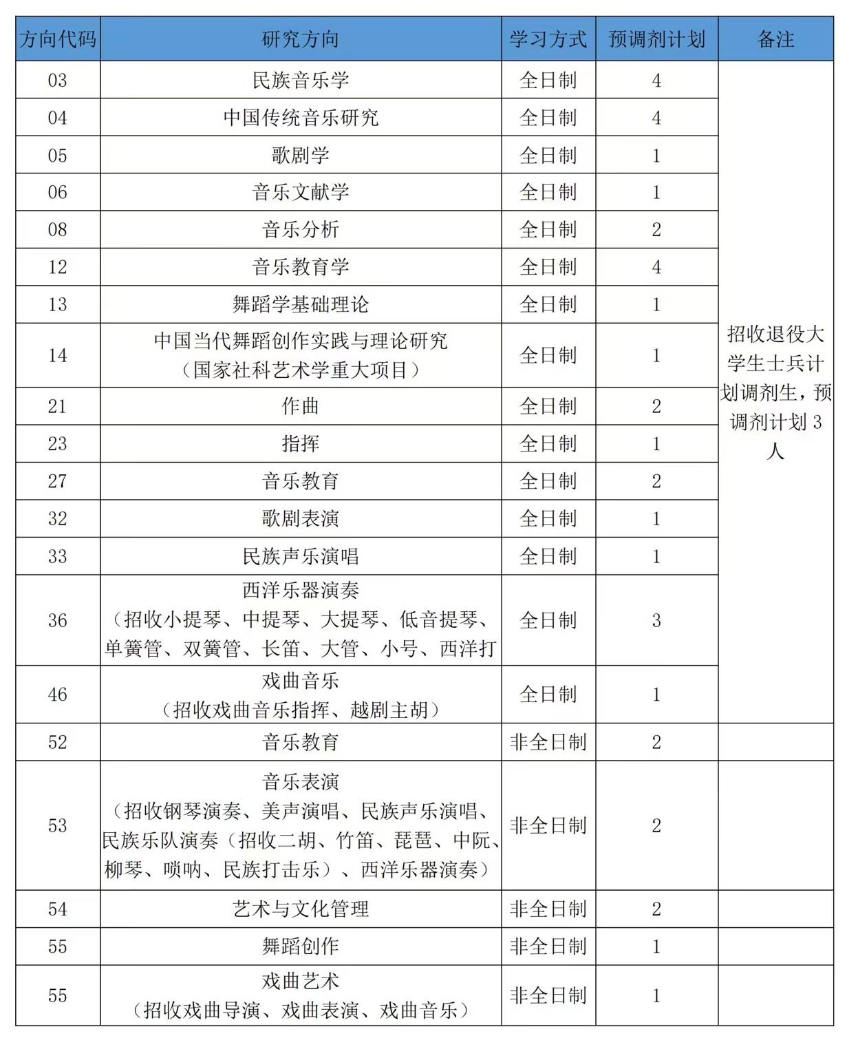 備注:考生在填報時需注明具體研究方向,如53音樂表演需備注鋼琴演奏/民族樂隊演奏(二胡)/西洋樂器演奏(單簧管)等。