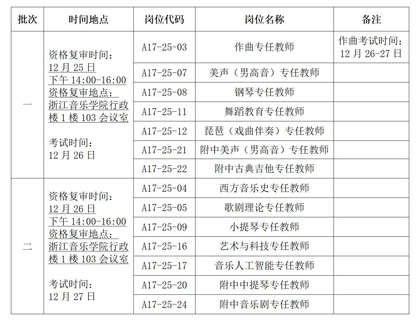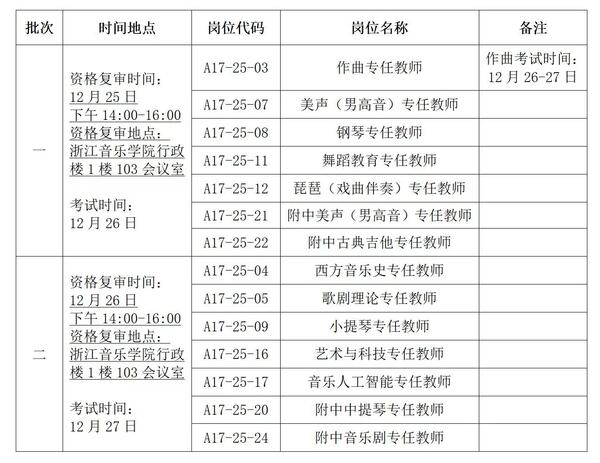 根據(jù)《浙江音樂學(xué)院2025年下半年特殊專業(yè)技術(shù)崗位公開招聘考試預(yù)告》安排,學(xué)校對開考崗位報名材料進行了資格審核,資格初審結(jié)果已通過報名系統(tǒng)反饋。根據(jù)學(xué)校考試工作安排,現(xiàn)就有關(guān)事項通知如下: