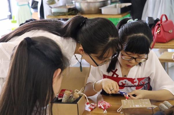 “快來加入我們吧,親手制作香囊和五彩線!”由宮羽漢服社主辦的“香囊傳情”系列活動吸引了很多同學(xué)。主辦方準(zhǔn)備了香料、香囊、彩色絲線,同學(xué)們精心挑選自己喜歡的香料和布包,潛心制作、樂在其中。