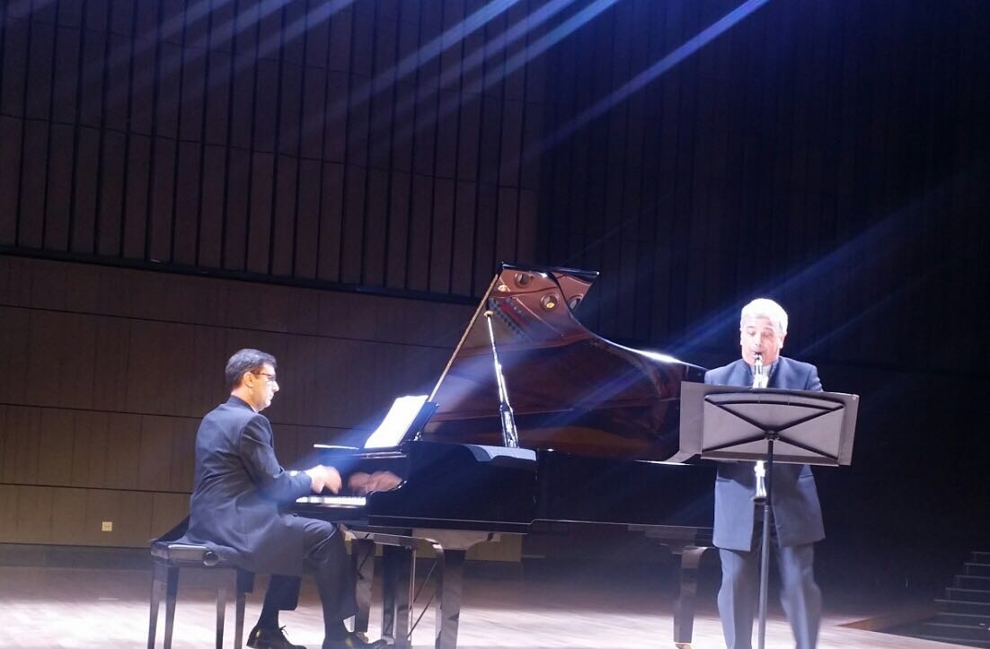 音樂(lè)會(huì)上,意大利音樂(lè)家曼加尼、波希與巴托利為我院師生獻(xiàn)上非常精彩的藝術(shù)作品。第一首曲子是由中國(guó)傳統(tǒng)民歌《山丹丹花開紅艷艷》改編的單簧管作品。他們?cè)芯柯晿?lè)、器樂(lè)的多個(gè)版本,通過(guò)意大利人的視角詮釋了中國(guó)音樂(lè)之美。隨后,波希演奏了多首引人入勝的意大利作品,如布索尼的《悲歌》、卡瓦里尼《羅西尼的花》,以及曼加尼本人創(chuàng)作的的《浪漫曲》和《奏鳴曲》。波希與巴托利的演奏行云流水,自然天成,從技巧的控制到情感的傳遞,從色彩的掌控到音樂(lè)的表達(dá),樂(lè)思意緒滾滾流動(dòng),真情實(shí)感直抵心田。演奏家用精湛的技藝贏得了觀眾持久的掌聲。