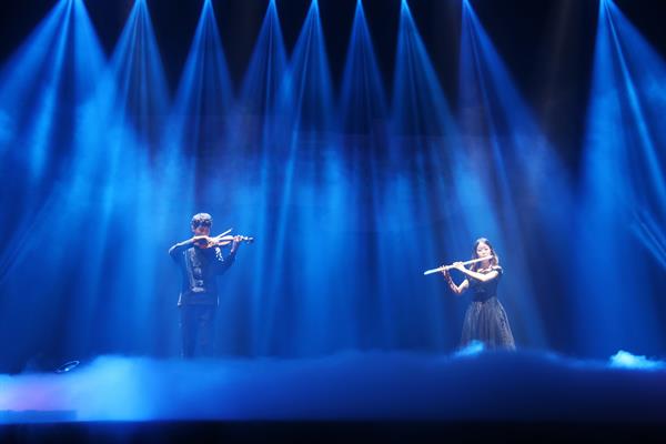 當晚,管弦系團委充分發(fā)揮實踐隊員專業(yè)優(yōu)勢,以管弦樂獨奏、室內樂等藝術形式重新編曲,演奏了《梁?!贰犊悼滴枨贰短炜罩恰贰?/span>summer》《一步之遙》《戀戀風塵》《月亮代表我的心》等經典中外名曲,并邀請學院流行系學生演唱通俗歌曲《會飛的野馬》,聯(lián)合當?shù)匚幕^的文藝工作者表演了《辛德勒名單》《荷塘月色》戲曲《送鳳冠》選段等節(jié)目。晚會還充分挖掘仙居傳統(tǒng)音樂文化,邀請當?shù)孛耖g藝人表演了頗具地方音樂特色的《仙居山歌》,最后在全場齊唱《歌唱祖國》中圓滿結束。琴聲悠揚,歌聲回蕩,節(jié)目接地氣且極具觀賞性,迎來了觀眾熱烈的掌聲。