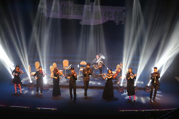 據(jù)悉,學院管弦系團委“快樂音樂教室”項目之藝術實踐走近公眾活動,牢牢抓住國家文化建設戰(zhàn)略地位不斷凸顯、浙江文化強省建設持續(xù)推進、臺州市國家公共文化服務示范區(qū)創(chuàng)建、仙居文旅融合建設中國山水畫城市等契機,6月份就成立活動籌備組,充分對接當?shù)卣枨蟆⒄心紝嵺`隊員、精心策劃編排,實踐隊員放棄假期休息、克服高溫天氣認真彩排。仙居縣政府高度重視本次活動,常委、副縣長傅巧玲多次看望實踐隊員慰問活動進程,仙居縣文廣新局、文化館全力支持,在場館安排、經費來源、后勤保障等方面都周密安排和全程保障。短短一周內,管弦系師生分別在橫溪鎮(zhèn)、白塔鎮(zhèn)、淡竹鄉(xiāng)、下各鎮(zhèn)、仙居劇院開展文藝演出、文化考察等活動,五場晚會現(xiàn)場觀看人數(shù)近萬人次,又開通網絡直播方式擴大活動影響力,以實際行動參與到在地域文化品牌活動打造,積極引導民間力量參與文化事業(yè),根據(jù)群眾需要、地方特色廣泛開展藝術巡演活動,讓老百姓享受到更多、更好的高雅藝術文化服務。