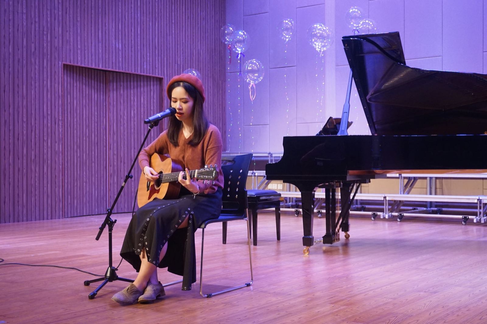 活動(dòng)以音樂工程系學(xué)生的原創(chuàng)作品為主,作詞、作曲、編曲與演唱充分展現(xiàn)了學(xué)生的高水平專業(yè)素養(yǎng)。演出中,151班伍真同學(xué)作詞作曲,梁耀文同學(xué)演唱《夢幻的人》;《月半小夜曲》由黃耀田同學(xué)重新編曲、改編,加入了新的思想創(chuàng)作,并把獨(dú)唱改編成男女合唱的形式,增加了英語部分的填詞,巧妙地表達(dá)出了他對這首歌曲的獨(dú)到見解。何錚澄同學(xué)為大家?guī)砹俗约鹤髟~作曲的吉他彈唱《呱呱呱》,表達(dá)了她對高中生活與朋友的回憶與留戀。