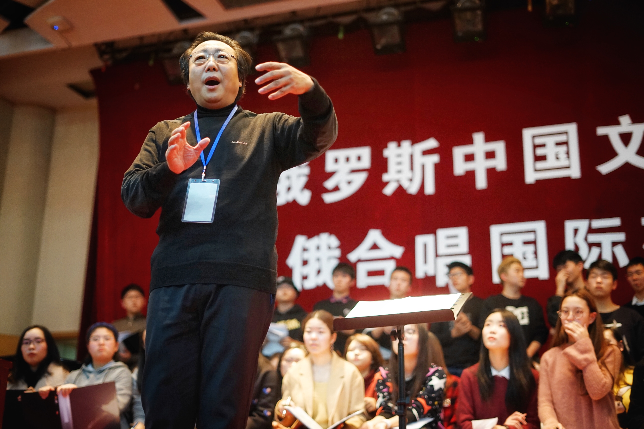 研討會上,閻寶林以《中國民族合唱的發(fā)展在浙江音樂學(xué)院“八秒”合唱團(tuán)訓(xùn)練中的呈現(xiàn)》為題進(jìn)行了學(xué)術(shù)講座,梳理合唱藝術(shù)承接脈絡(luò),展示我院合唱教學(xué)成果。他通過對中國民族合唱發(fā)展的宏觀梳理,以“八秒”訓(xùn)練為例,以點(diǎn)帶面地說明傳統(tǒng)功夫與前瞻理念的辯證關(guān)系,提出當(dāng)下要結(jié)合當(dāng)代社會、文化需求挖掘具有民族特色、符合中國新時代的合唱作品。在“八秒”實(shí)況視頻播出時,全場三次響起熱烈的掌聲。隨后,閻寶林對華東理工大學(xué)合唱團(tuán)演唱的具有鮮明壯族風(fēng)格作品《舍得舍不得》進(jìn)行實(shí)訓(xùn)排練指導(dǎo),真實(shí)呈現(xiàn)的目的是為了全面而深入推進(jìn)中俄在合唱文化領(lǐng)域的交流和合作。