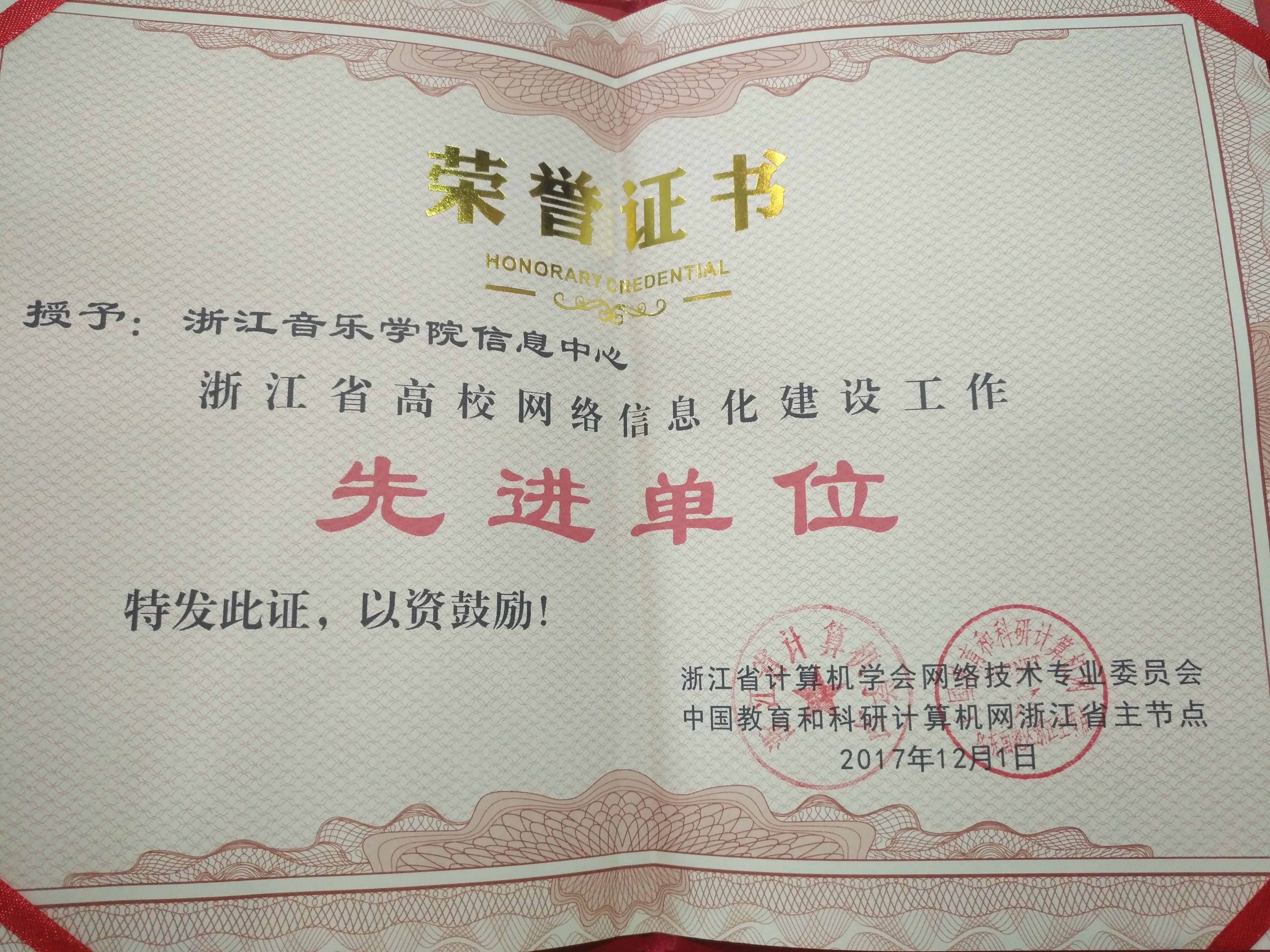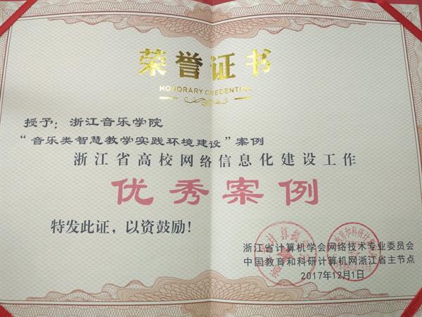 12月1日,2017年華東南“三省一市”高校信息化研討會(huì)暨中國(guó)教育和科研計(jì)算機(jī)網(wǎng)浙江省主節(jié)點(diǎn)第十七次學(xué)術(shù)年會(huì),浙江省計(jì)算機(jī)學(xué)會(huì)網(wǎng)絡(luò)技術(shù)專業(yè)委員會(huì)第十二次技術(shù)研討會(huì)在紹興召開。會(huì)議對(duì)浙江省高校網(wǎng)絡(luò)信息化建設(shè)的先進(jìn)代表進(jìn)行了表彰。學(xué)院榮獲浙江省高校網(wǎng)絡(luò)信息化建設(shè)工作先進(jìn)單位,學(xué)院信息化項(xiàng)目“音樂類智慧教學(xué)實(shí)踐環(huán)境建設(shè)”案例榮獲浙江省高校網(wǎng)絡(luò)信息化建設(shè)工作優(yōu)秀案例。
