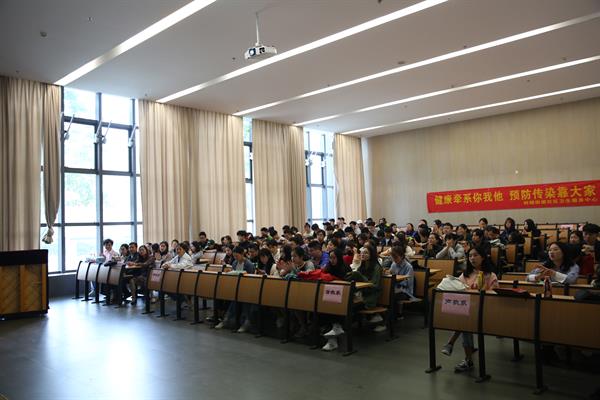 4月25日,以《健康情系你我他,預防傳染靠大家》為主題的健康知識講座在人文樓105教師舉行。學院邀請轉塘街道社區(qū)衛(wèi)生服務中心防疫科陳璟、蒲明亮兩位醫(yī)師開展了一次防治結核病、艾滋病知識講座,全院200余名學生參加聆聽。