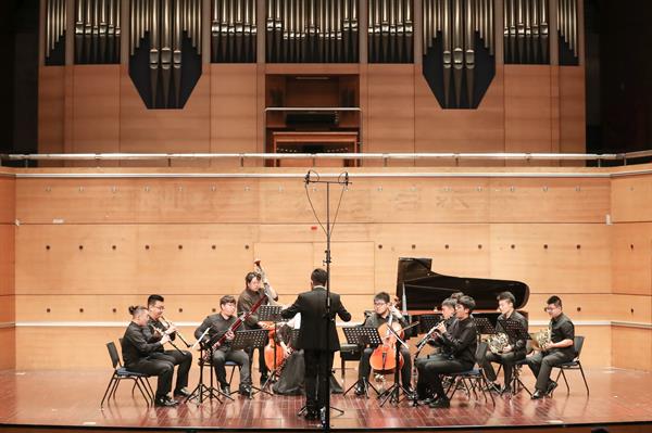 除了挑戰(zhàn)自我的演奏能力外,李佳胤也在不斷挑戰(zhàn)他對(duì)音樂(lè)的把控能力,以及在教學(xué)實(shí)踐中不斷的新嘗試。今年,他參與組建與指導(dǎo)的新古典重奏樂(lè)團(tuán)(NeoKlassic 重奏樂(lè)團(tuán))也在音樂(lè)會(huì)中精彩亮相。這支曾在“友心杯”、“蜂鳥(niǎo)杯”等國(guó)內(nèi)賽事獲獎(jiǎng)的重奏組合,為大家獻(xiàn)演了德沃夏克的管樂(lè)重奏作品《d小調(diào)管樂(lè)小夜曲》,驚艷全場(chǎng)。