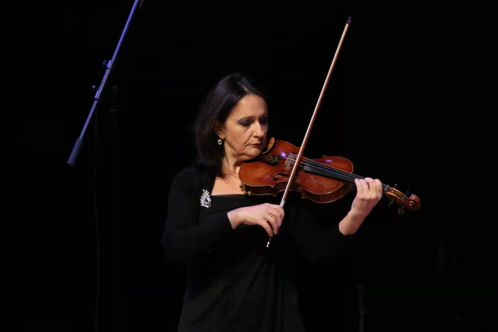 音樂會以意大利作曲家塔爾蒂尼D大調(diào)小號協(xié)奏曲開場,小號演奏家米拉登·焦耶維奇用完美的音色、精湛的技術(shù),把觀眾帶入了意大利的音樂世界,大調(diào)明亮輕快的色彩與感染力影響了在場的所有觀眾,讓整個音樂廳都洋溢著塞爾維亞暖春的氣息和萬物復蘇的欣喜。鋼琴家米洛舍維奇用精湛的技術(shù)帶來了改編自巴赫的E大調(diào)帕蒂塔;小提琴家伊萬娜·阿奇莫斯基·茲科齊演奏了短小精悍的小提琴協(xié)奏曲《中國花鼓》,給觀眾帶來新鮮感的同時,也增強了音樂的趣味性和魅力。
