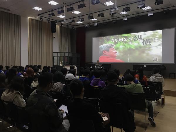 沈承宙還為戲劇系音樂劇2019級(jí)本科班學(xué)生、附屬音樂學(xué)校音樂劇專業(yè)三個(gè)年級(jí)近百名學(xué)生作了題為“音樂劇藝術(shù)縱橫談”的學(xué)術(shù)講座。在近3個(gè)小時(shí)的講座中,沈承宙向同學(xué)們講述了自己的舞臺(tái)生涯、如何與音樂劇結(jié)緣、自費(fèi)去美國考察學(xué)習(xí)音樂劇、以及在國內(nèi)教授音樂劇、創(chuàng)作音樂劇的經(jīng)歷,讓同學(xué)們從他的親身經(jīng)歷中了解什么是音樂劇,音樂劇藝術(shù)是個(gè)怎樣令人陶醉癡迷的舞臺(tái)世界等內(nèi)容。最后,同學(xué)生們踴躍地提問,沈承宙一一解答了學(xué)生們?cè)谝魳穭W(xué)習(xí)上遇到的問題,并殷切希望同學(xué)成為未來支撐中國音樂劇蓬勃發(fā)展的優(yōu)秀人才。生動(dòng)精彩的講座極大地鼓舞了同學(xué)們對(duì)音樂劇的學(xué)習(xí)熱情,大家紛紛表示受益匪淺。