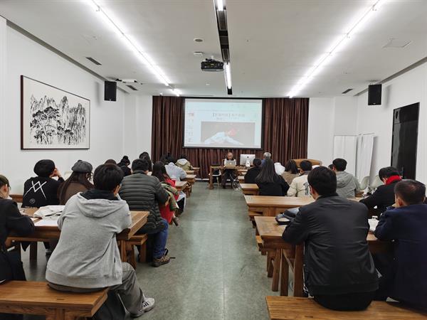 講座中,劉宏軍以日本宮廷雅樂作為切入點,講解了由唐代絲綢之路為紐帶而發(fā)展繁盛的亞洲音樂文化。講座內(nèi)容主要側(cè)重于日本,同時涉及朝鮮半島、西亞與東南亞,并從樂器形制和演奏方式等方面進(jìn)行比較,清晰直觀地向大家展示了文化融合的成果。結(jié)尾的互動提問環(huán)節(jié),同學(xué)們積極發(fā)言提問,表現(xiàn)出對于“隋唐古譜樂舞”的極大興趣。講座在熱烈的掌聲中順利結(jié)束,師生現(xiàn)場合影留念。