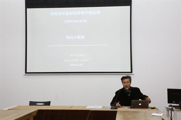 11月22日下午,四川音樂學(xué)院作曲系鄒向平教授應(yīng)邀為我院作曲與指揮系師生作了題為“民間音樂素材在作曲中的運(yùn)用”專題講座。