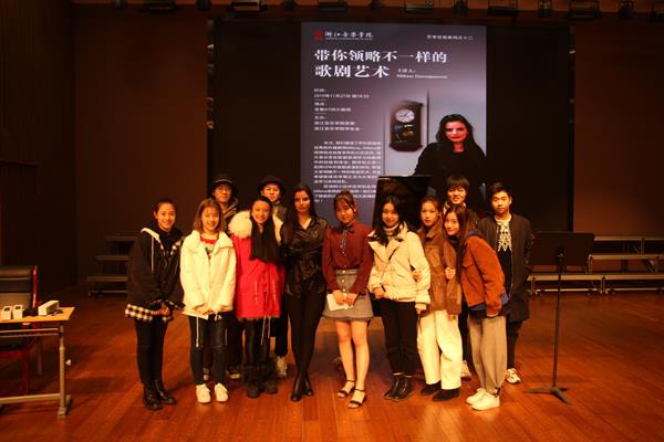 講座中,Milena老師以“帶你領(lǐng)略不一樣的歌劇藝術(shù)”為題,結(jié)合自己的聲樂學(xué)習(xí)經(jīng)歷與同學(xué)們分享了表演心得。為了更直觀地解析演唱技巧,她還教唱了藝術(shù)歌曲《蓮花》和歌劇浮士德選段《珠寶之歌》,并及時指正演唱者在表演過程中出現(xiàn)的問題。在互動環(huán)節(jié)中,同學(xué)們踴躍報名,依次上臺一展歌喉,她一一耐心地對每位同學(xué)的演唱進行點評,并悉心指導(dǎo)同學(xué)們提升演唱技巧,掌握發(fā)聲方法。到場的師生們都被她的人格魅力和專業(yè)素養(yǎng)所折服。