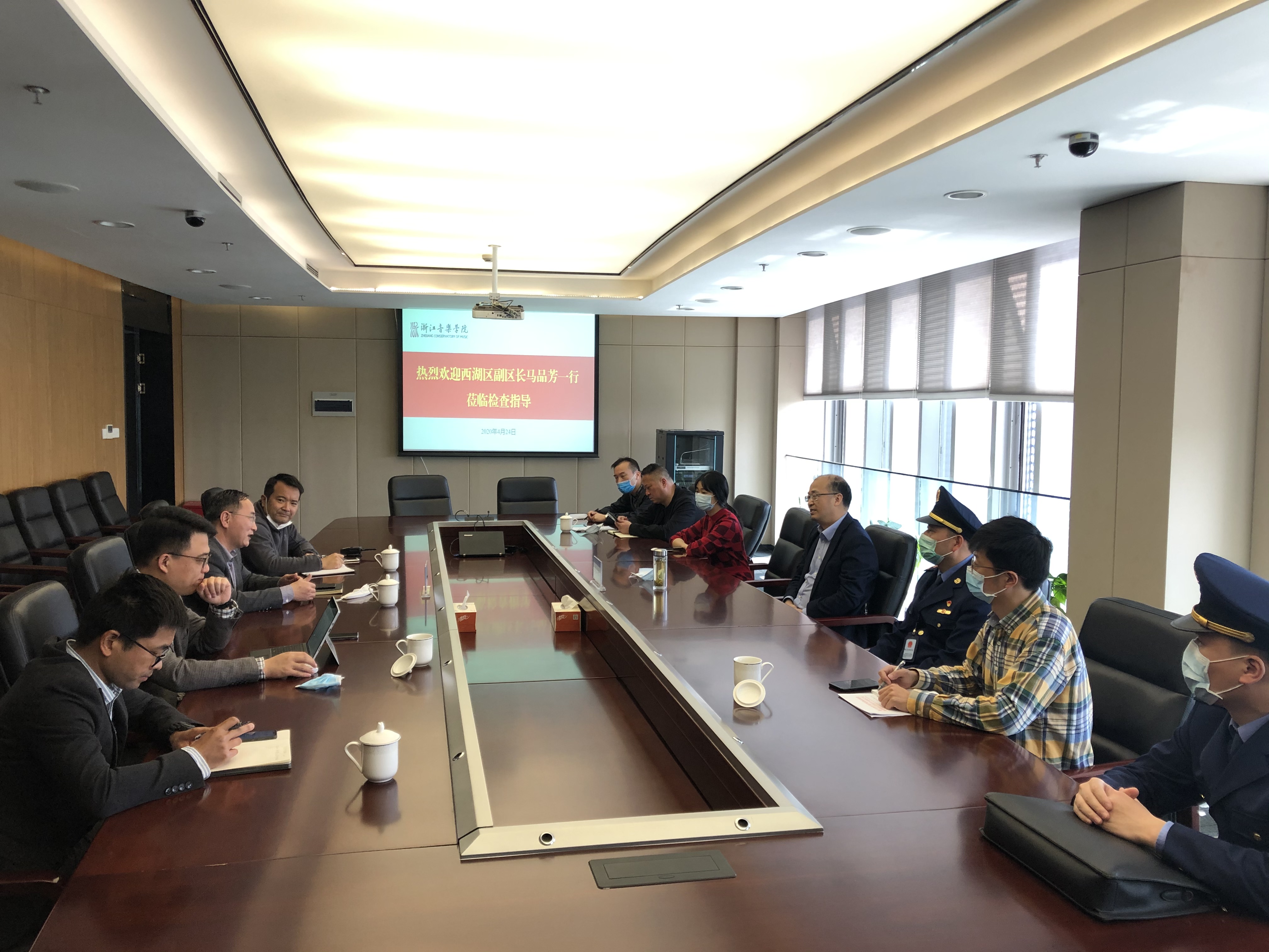 4月24日,西湖區(qū)副區(qū)長馬品芳等一行來院指導(dǎo)疫情防控和開學(xué)準(zhǔn)備工作。學(xué)院副院長張偉波,樂典公司、保衛(wèi)處等部門負(fù)責(zé)人陪同調(diào)研。