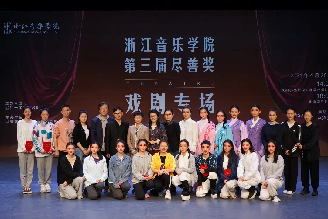 為全面提升內(nèi)涵建設(shè),切實提高學(xué)生的專業(yè)水平、綜合素質(zhì)和創(chuàng)新意識,展現(xiàn)新時代大學(xué)生積極有為、奮發(fā)向上的精神風(fēng)貌,營造健康高雅的校園文化環(huán)境,根據(jù)《浙江音樂學(xué)院學(xué)生“盡善獎”大賽實施辦法》,近日,戲劇系在舞蹈樓A201匯報廳舉辦第三屆盡善獎戲劇專場選拔賽。
