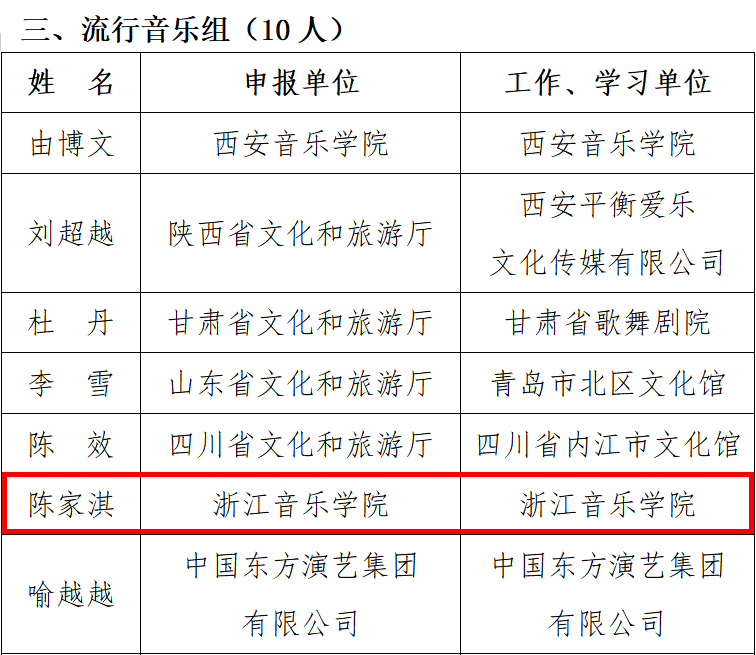 近日,文化和旅游部發(fā)布《文化和旅游部藝術(shù)司關(guān)于2021年度“全國聲樂領(lǐng)軍人才培養(yǎng)計(jì)劃”暨第十四屆全國聲樂展演入選人員名單的公示》,共52人入選。其中,學(xué)院流行音樂系2018級(jí)學(xué)生陳家淇入選流行音樂組名單。