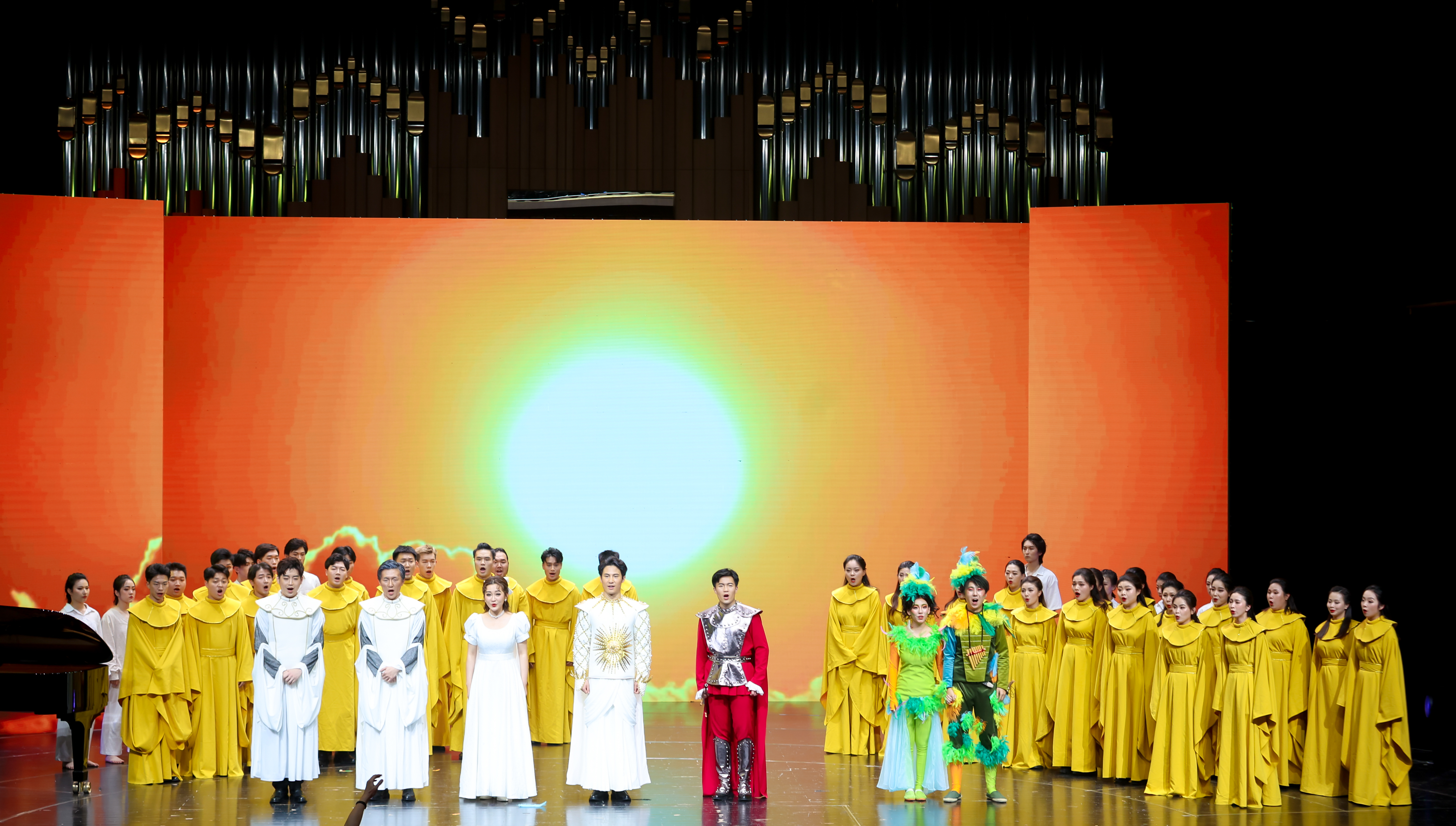 《魔笛》是歐洲最偉大的古典主義音樂作曲家之一莫扎特在生命的最后一年創(chuàng)作的作品,是一部歌頌光明戰(zhàn)勝黑暗,理智戰(zhàn)勝丑惡的神話歌劇。作品中運(yùn)用了獨(dú)唱的詠嘆調(diào)、重唱形式的對(duì)唱及一人唱眾人和的合唱、齊唱等歌唱形式,學(xué)生們精彩演繹了《復(fù)仇的火焰在我心中燃燒》《多么美麗的肖像》《我失去一切幸?!返葞锥谓?jīng)典的詠嘆調(diào),贏得了在場觀眾的陣陣掌聲。