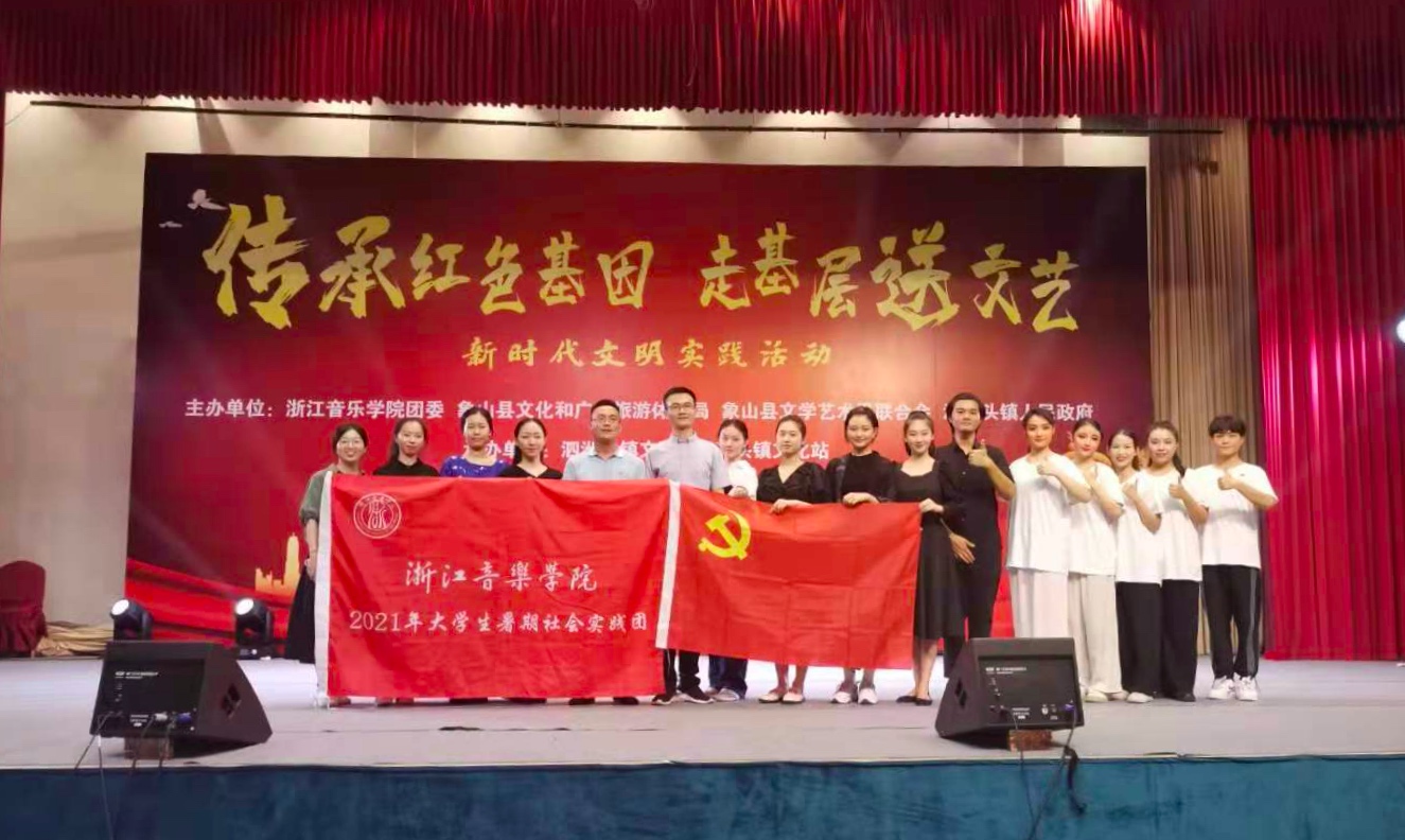 在慶祝中國共產(chǎn)黨成立100周年之際,為扎實推進大學生黨史學習教育,強化實踐育人成效,7月17日,學院國樂系、戲劇系、舞蹈學院師生以“傳承紅色基因,走基層送文藝”為主題,在象山縣開展為期10天的大學生暑期社會實踐活動,通過走基層、送文藝、為群眾辦實事等多種形式,助力浙江共同富裕示范區(qū)、美麗鄉(xiāng)村精神文明建設(shè),激勵青年學子在學思踐悟中學黨史、強信念、跟黨走,努力成長為德智體美勞全面發(fā)展的社會主義建設(shè)者和接班人。