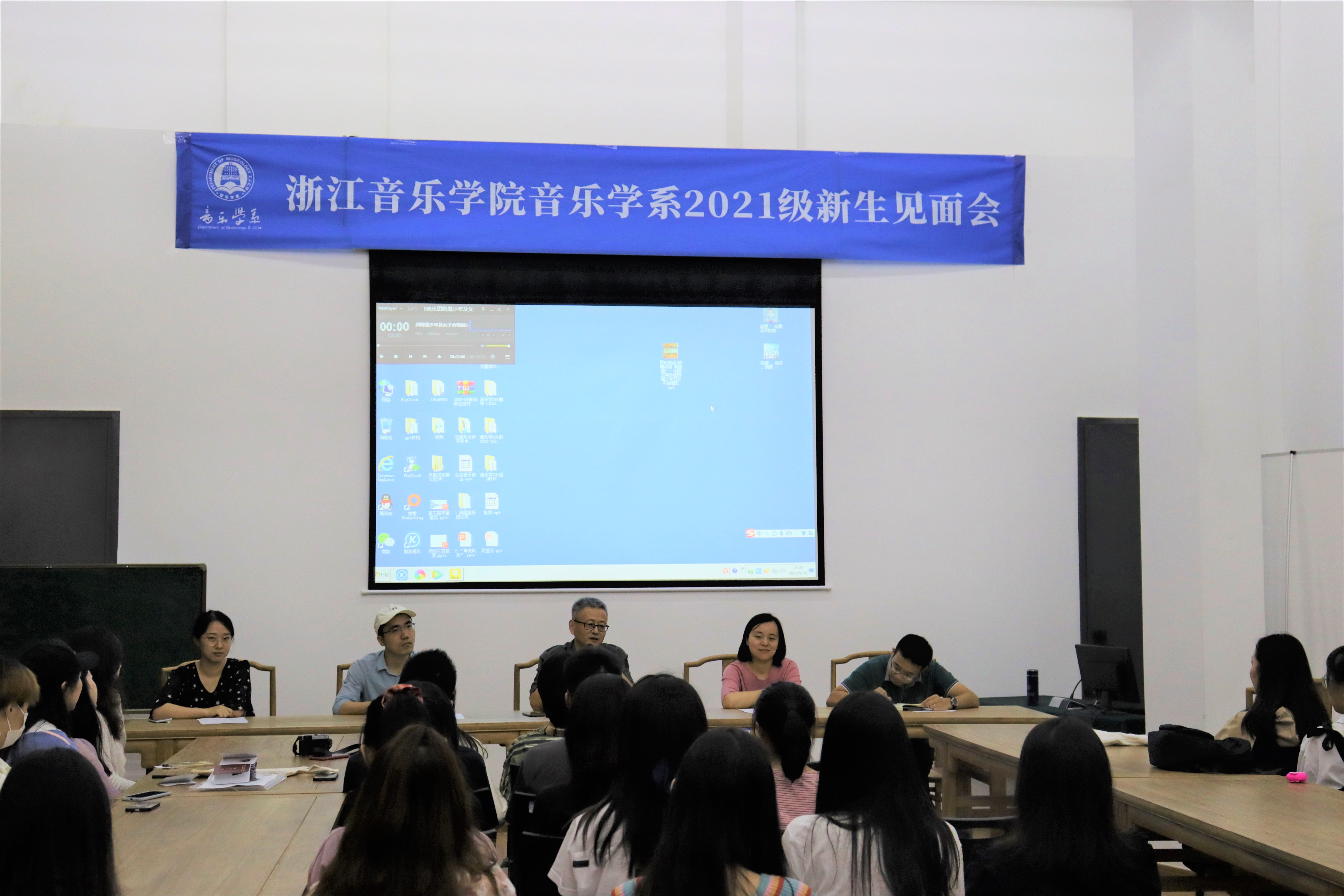 9月16日晚,2021級新生見面會在音樂學系報告廳舉辦。音樂學系黨總支書記、主任林林,系黨總支副書記、副主任方振宇及輔導員、班主任等參加了見面會。見面會由方振宇主持。
