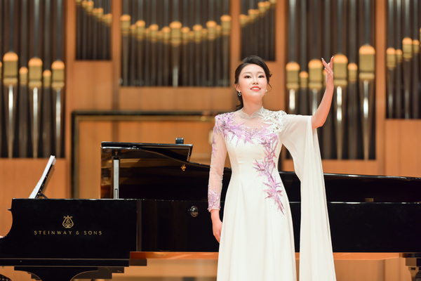 音樂會采用新、老生聯(lián)袂出演的形式。演出人員由聲樂歌劇系本科、研究生新生代表,第十三屆中國音樂金鐘獎聲樂復賽選手共14人組成,分別演唱了《秋水長天》《勝利時再聞花兒香》《思鄉(xiāng)曲》《桂花樹下》等18首膾炙人口的經(jīng)典歌曲。最后,音樂會在全體演員合唱《我和我的祖國》中落下帷幕。此次音樂會的演出規(guī)模、專業(yè)水準,均創(chuàng)歷年新高。學子們用動聽的歌聲、精湛的表演,為新學年開新篇,為祖國72周年生日獻禮。