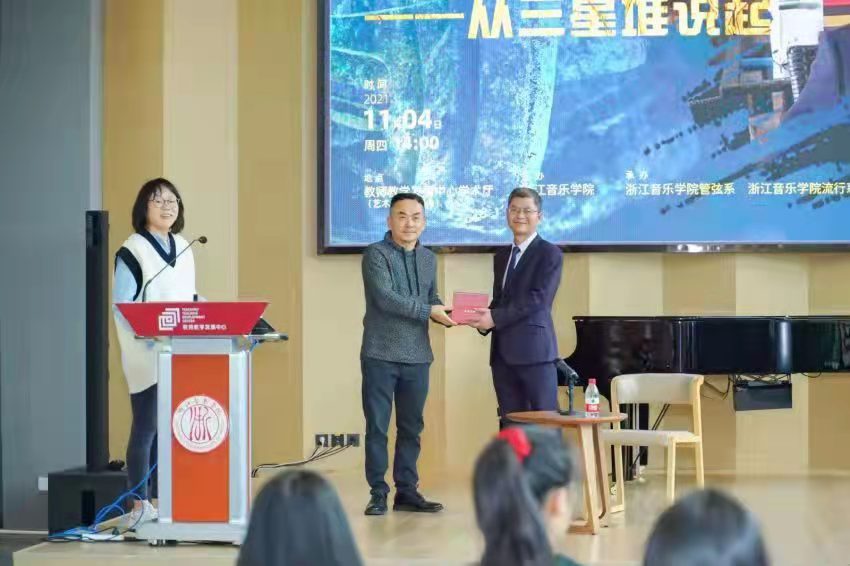 11月4日下午,《“考古探秘”從三星堆說起》講座在教師教學發(fā)展中心學術(shù)廳(藝術(shù)創(chuàng)意空間內(nèi))舉行。本次活動由學院主辦,管弦系、流行音樂系、音樂學系共同承辦,浙江省博物館學術(shù)部原主任、中國京杭大運河博物館原常務副館長、浙江農(nóng)林大學茶學與茶文化學院教授、碩士生導師周新華教授主講,管弦系黨總支書記魏鸝主持。