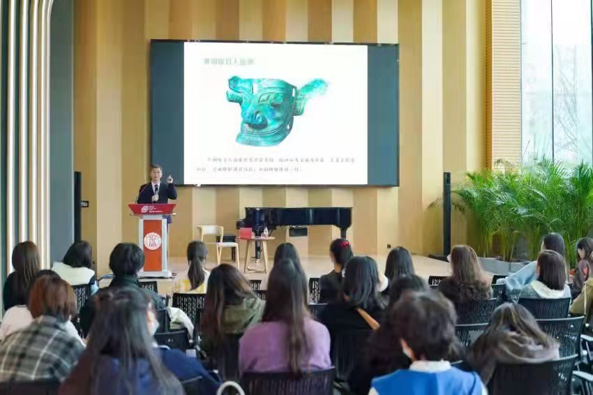 周新華用幽默風趣的語言為聽眾介紹了考古的過去與現(xiàn)狀,以及自身在學習考古專業(yè)時的所見所聞,使聽眾逐步增進了對真實的考古學科的了解。隨后,他以近期熱門話題——三星堆文化為例,講述了該文化在學術(shù)界的重要意義,展現(xiàn)了中華文化的豐富性、厚重性與傳承關(guān)系。隨后,他辨析了盜墓與考古兩者的概念和關(guān)系,重申了我國關(guān)于文物方面的相關(guān)法律和規(guī)范。最后,講座在輕松愉快的提問互動環(huán)節(jié)中結(jié)束。