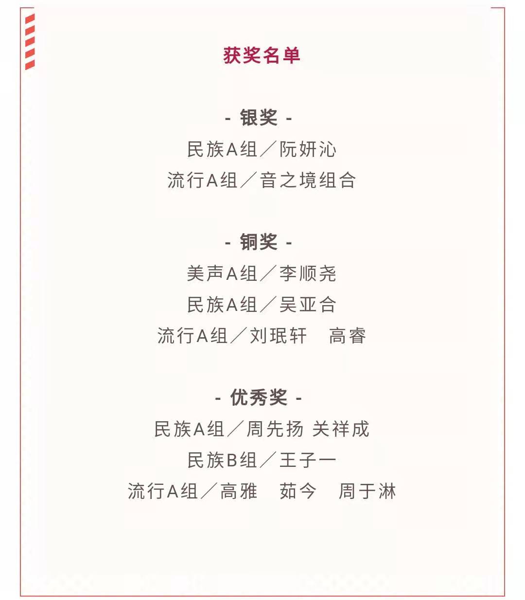 近日,由浙江省文化和旅游廳、慈溪市人民政府主辦,慈溪市文化和廣電旅游體育局、浙江演藝集團(tuán)承辦的2021“新松計劃”浙江省青年歌手大賽復(fù)決賽在慈溪大劇院圓滿落幕。經(jīng)過初賽、復(fù)賽和決賽的激烈角逐,學(xué)院共12名學(xué)生闖入決賽,取得了2個銀獎、4個銅獎、6個優(yōu)秀獎的佳績。