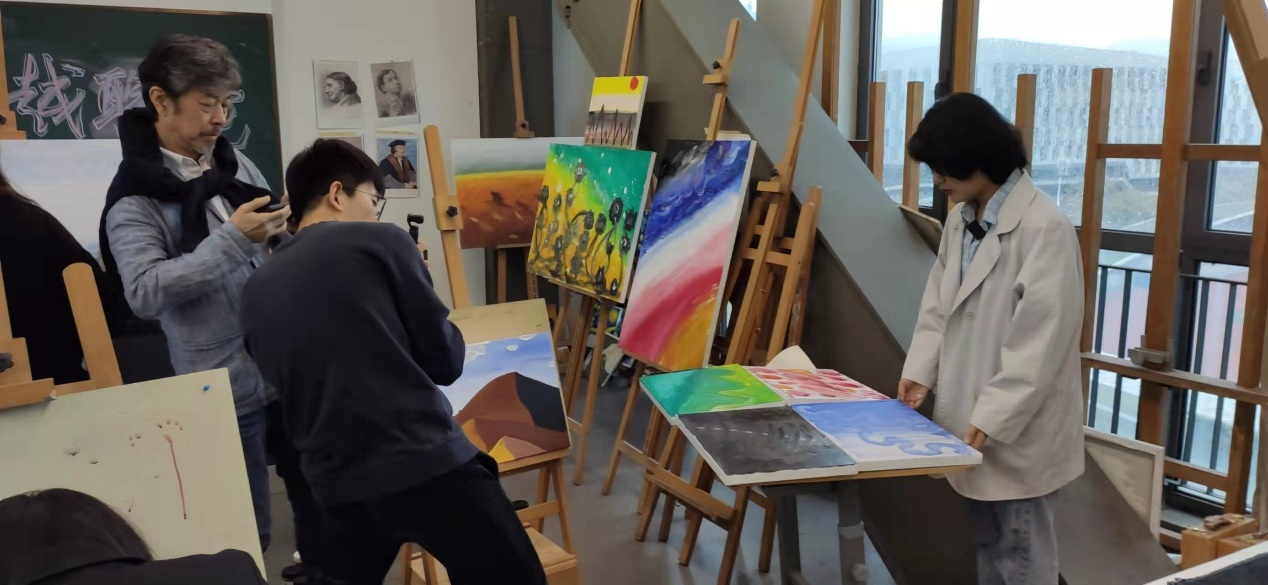 近日,由學(xué)院沈納藺教授和畫家常嘉煌教授聯(lián)合開設(shè)、中國(guó)美術(shù)學(xué)院博士沈臨楓擔(dān)任助教的《超越聯(lián)覺:音樂—繪畫跨學(xué)科理論與創(chuàng)作實(shí)踐》選修課程中期藝術(shù)實(shí)踐活動(dòng)在音工樓A502教室拉開了帷幕。選修此課程的70位來自各系的研究生,在3位老師的指導(dǎo)下創(chuàng)作出許多富有創(chuàng)新性的優(yōu)秀作品。