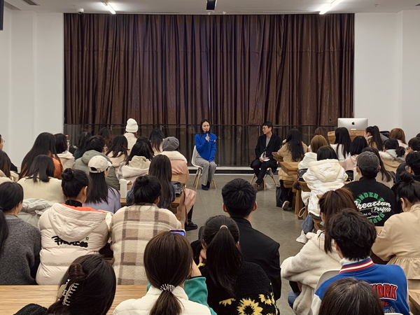 龔爽通過分享自身的求學經(jīng)歷,講述了她如何通過一步步努力,從“丑小鴨”變成“天鵝”的故事。她鼓勵同學們在學習中要耐住寂寞,勤思考、多練習、強信念,以問題為出發(fā)點,不斷突破自我;在實踐中要多參賽,在舞臺上磨礪自己,要拓寬自己的眼界,在校內(nèi)外活動中不斷完善自己,集百家之長,豐自身羽翼。在互動環(huán)節(jié)中,龔爽耐心解答了同學們的疑問,從基礎的開閉口音唱法的統(tǒng)一,到情感與技巧的有效融合;從學一首新歌,拓展到一場音樂會的準備;從不同場合為不同對象演唱的音色把控,到自身多聲音色彩的訓練等,都提出了自己獨到的見解,充分展現(xiàn)出她豐富的舞臺經(jīng)驗與多年的學習心得。最后她激勵同學們要認真學習專業(yè),積極投身舞臺實踐。