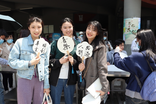 活動現(xiàn)場,一個個寫有“平安”“喜樂”“事必盡善”等字樣的宣紙扇、書法作品帶著美好祝愿,送入師生手中。本次活動還特別邀請了王維平、莫成練等教師,同學生一起在宣紙扇上留下蒼勁的筆墨。社團事務(wù)部還積極鼓勵在場師生一同參與,現(xiàn)場體會中國傳統(tǒng)書法的魅力。