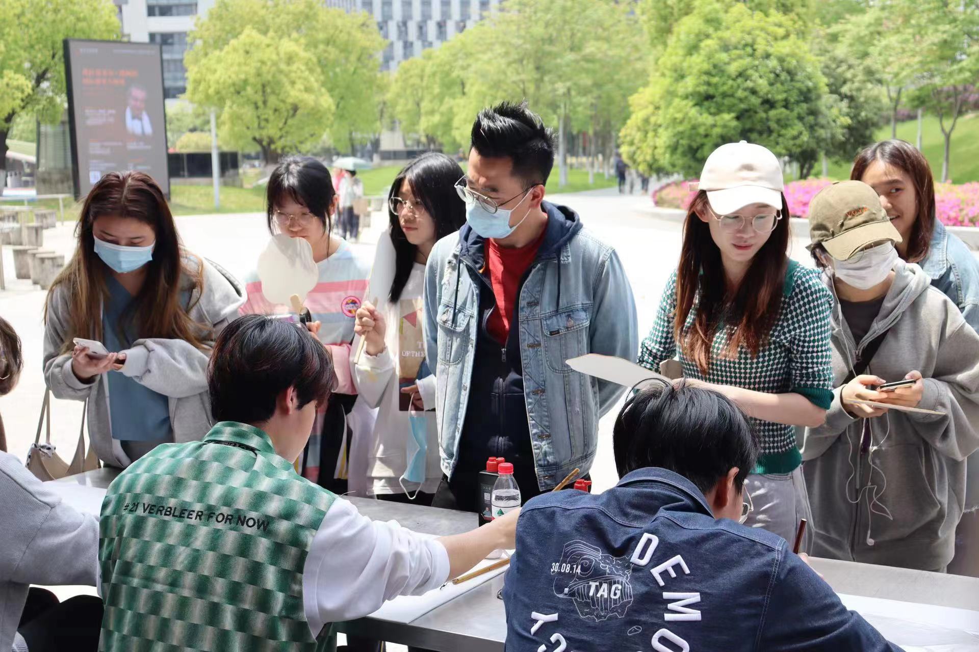 古墨輕磨滿紙香,硯池新浴燦生光。近日,由學院團委主辦、學院社團事務(wù)部與匯堂書法社承辦的“翰墨飄香,與你共寫”書法活動在學院南區(qū)食堂門口順利舉行?;顒訛槠?天,學院書法社成員、上屆學生書畫大賽獲獎選手、中國美術(shù)學院書法專業(yè)學生共同參與此次活動,在宣紙和宣紙扇上留下書法作品,并贈與廣大師生。