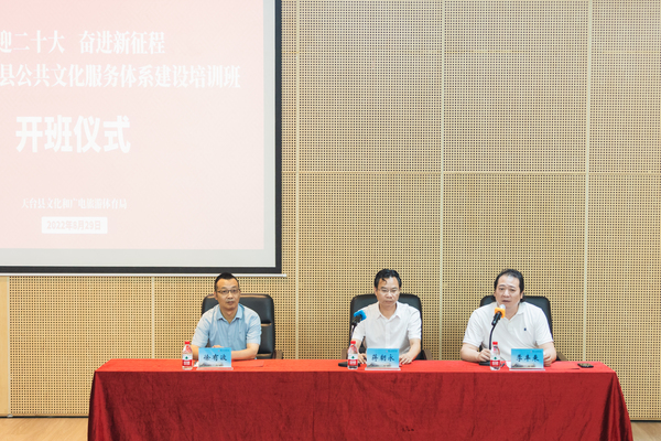 8月29日下午,由天臺(tái)縣文化和廣電旅游體育局主辦,浙江音樂(lè)學(xué)院承辦的“‘喜迎二十大˙奮進(jìn)新征程’2022年天臺(tái)縣公共文化服務(wù)體系建設(shè)培訓(xùn)班”順利開班。天臺(tái)縣文化和廣電旅游體育局局長(zhǎng)蔣朝永、副局長(zhǎng)徐有波和來(lái)自天臺(tái)縣各鄉(xiāng)鎮(zhèn)(街道)的48位業(yè)務(wù)骨干人才參加了開班儀式。學(xué)院繼續(xù)教育學(xué)院負(fù)責(zé)人在開班儀式上致歡迎辭,蔣朝永作開班動(dòng)員講話。